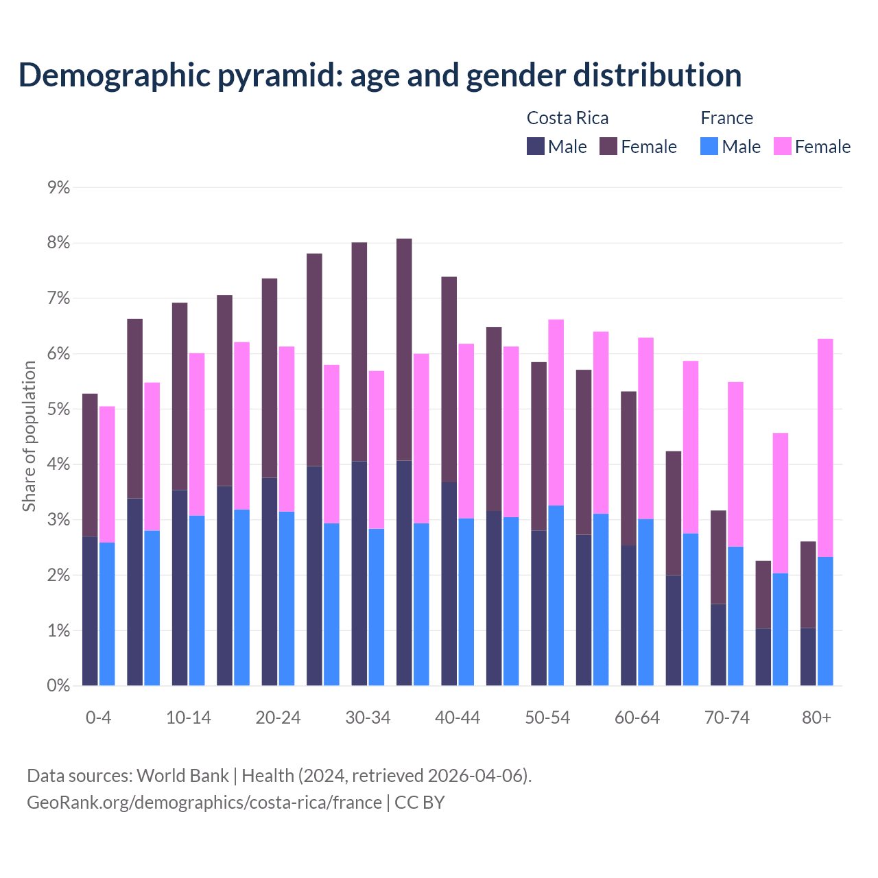 Demographics of Costa Rica compared to France: