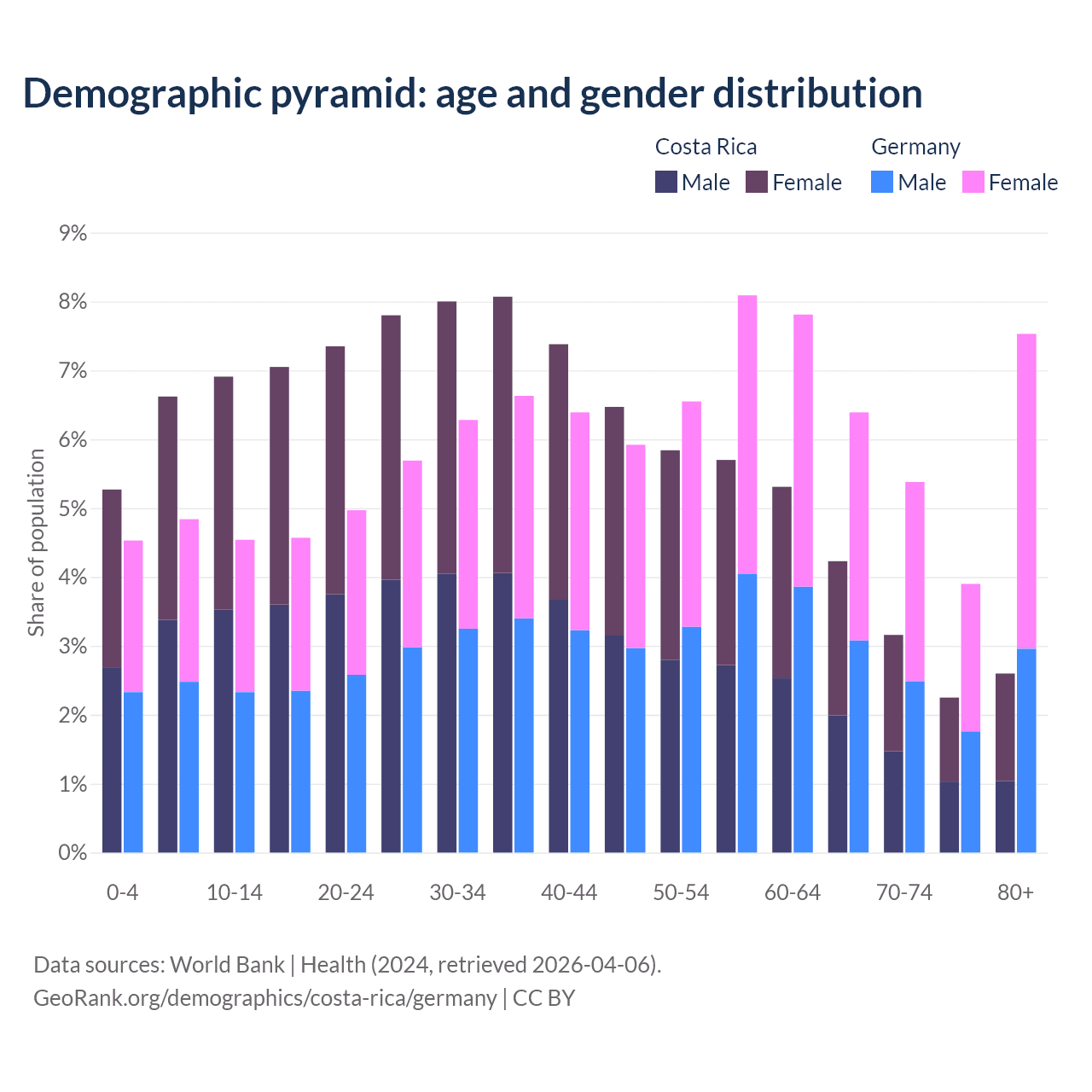 Demographics of Costa Rica compared to Germany: