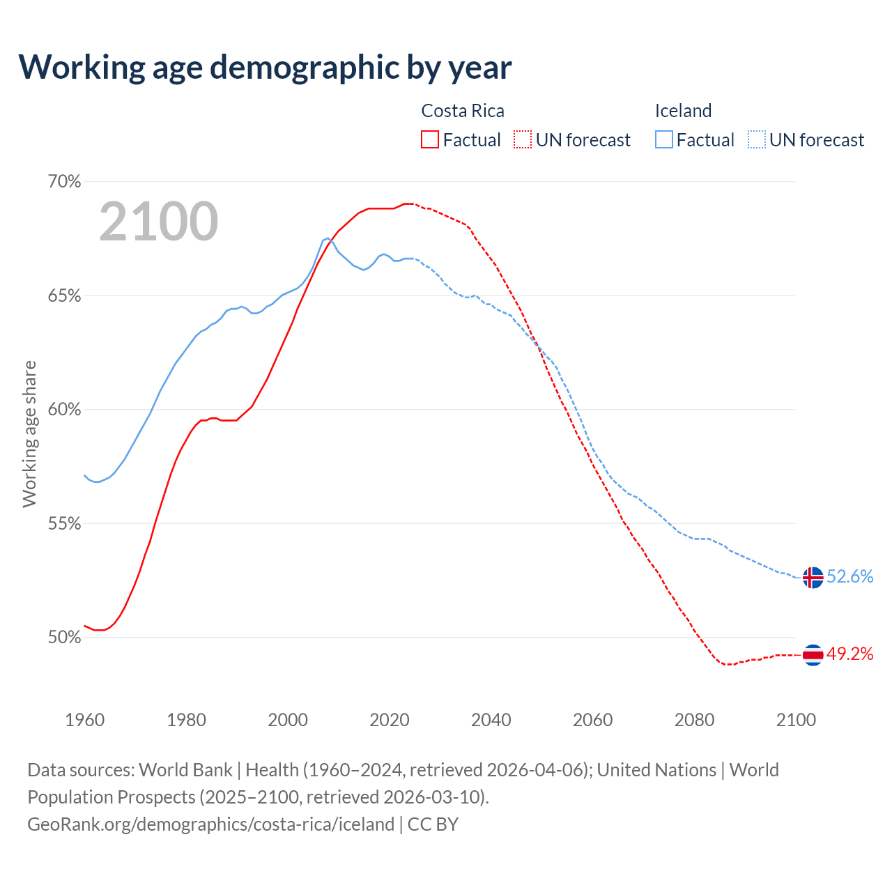 - Costa Rica has 3.57M working age adults (aged 15-64) vs 264K in Iceland.