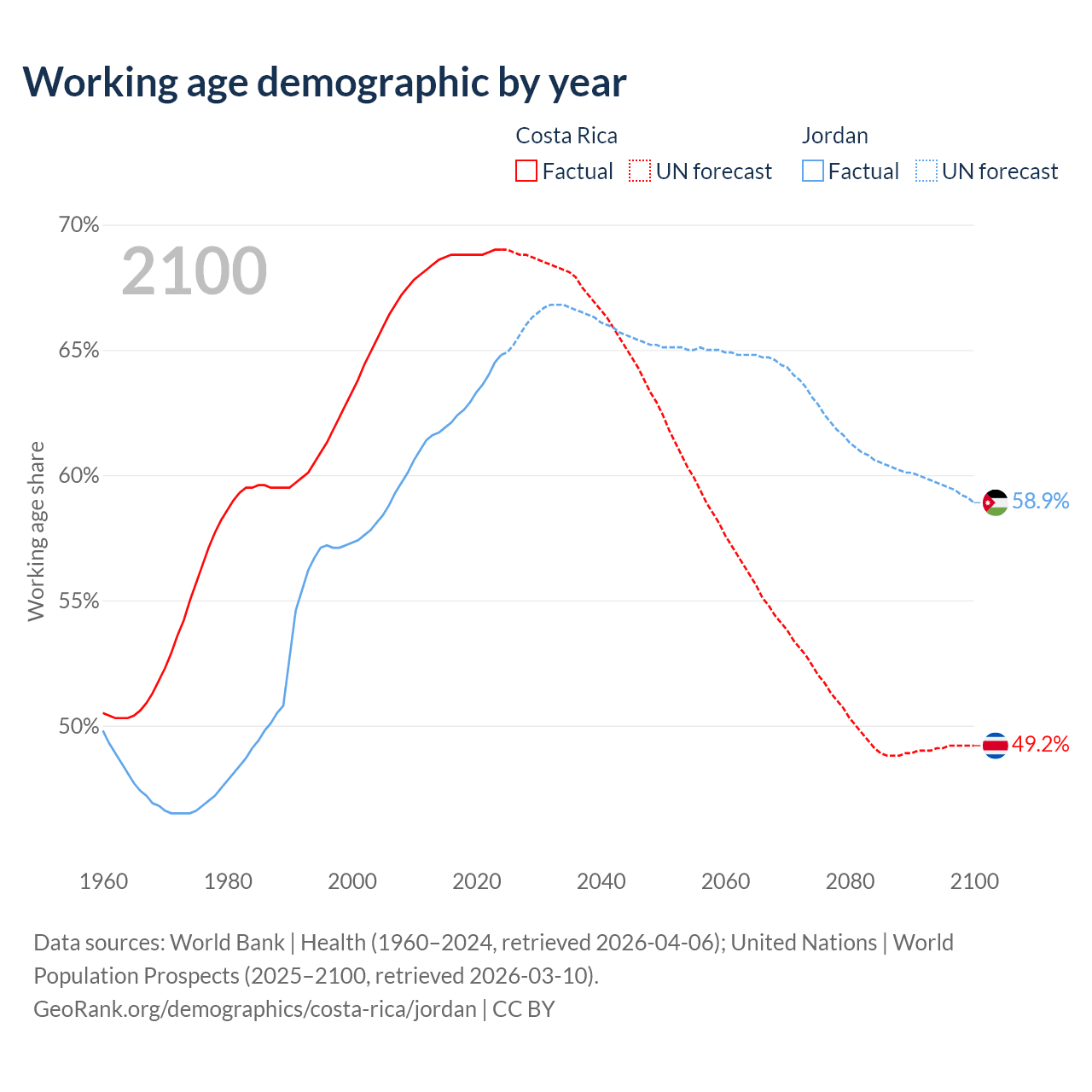 - Costa Rica has 3.57M working age adults (aged 15-64) vs 7.49M in Jordan.