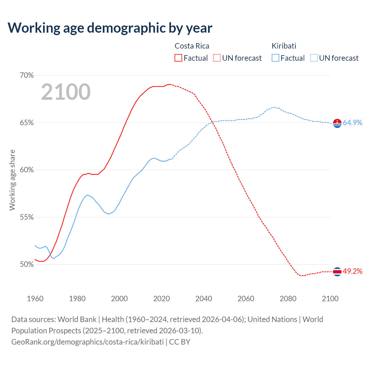 - Costa Rica has 3.57M working age adults (aged 15-64) vs 84.9K in Kiribati.