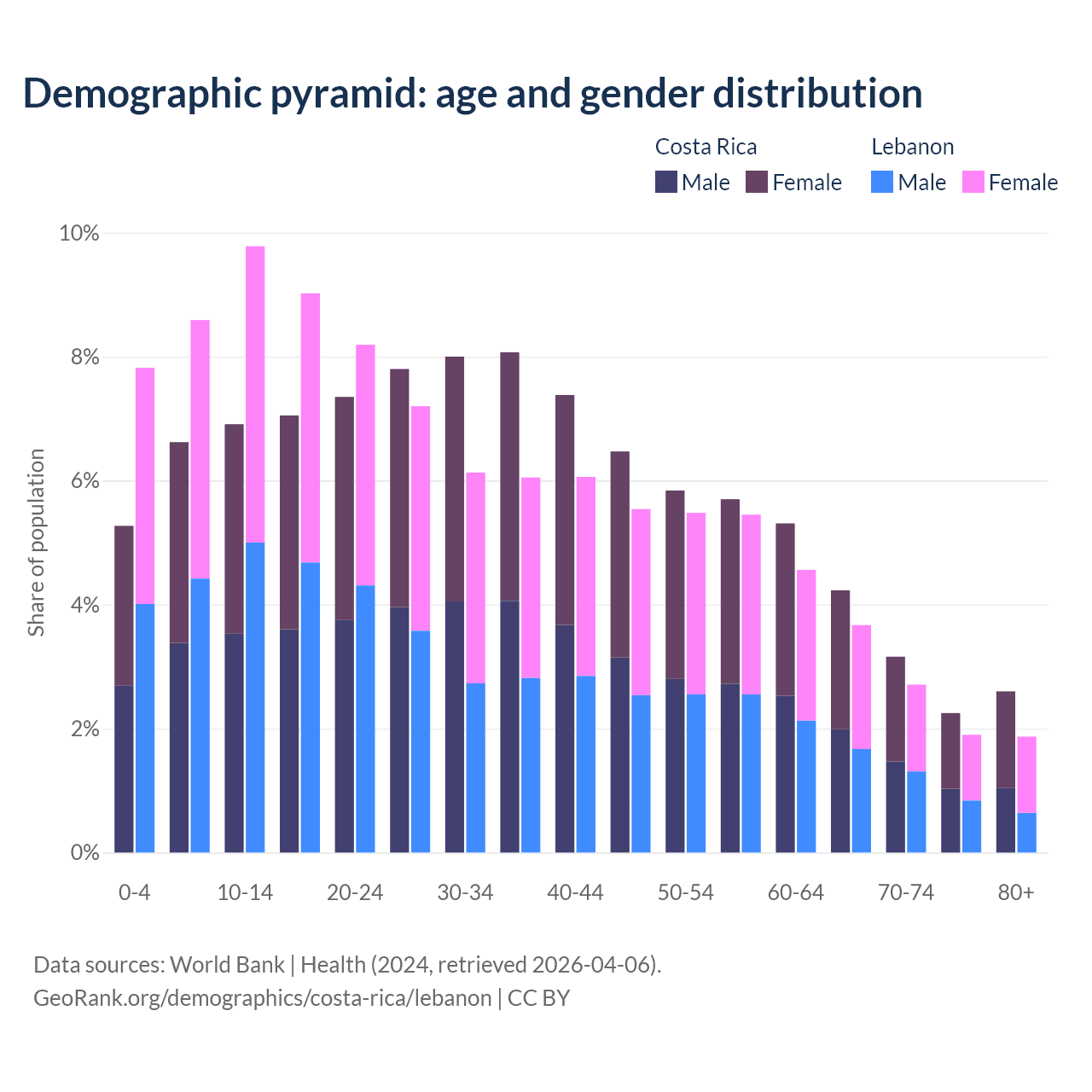 Demographics of Costa Rica compared to Lebanon: