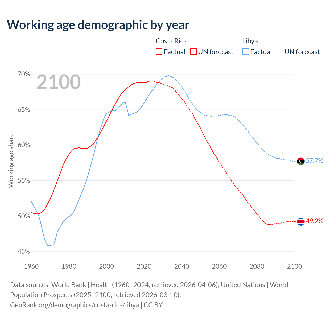 - Costa Rica has 3.57M working age adults (aged 15-64) vs 5.11M in Libya.