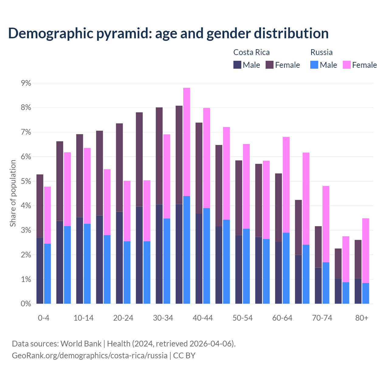Demographics of Costa Rica compared to Russia: