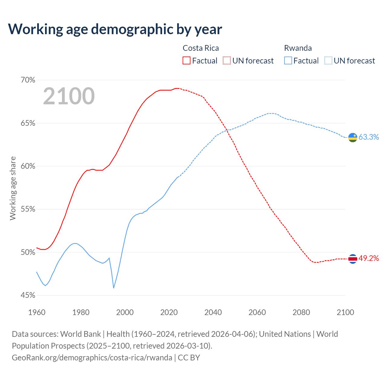 - Costa Rica has 3.57M working age adults (aged 15-64) vs 8.79M in Rwanda.