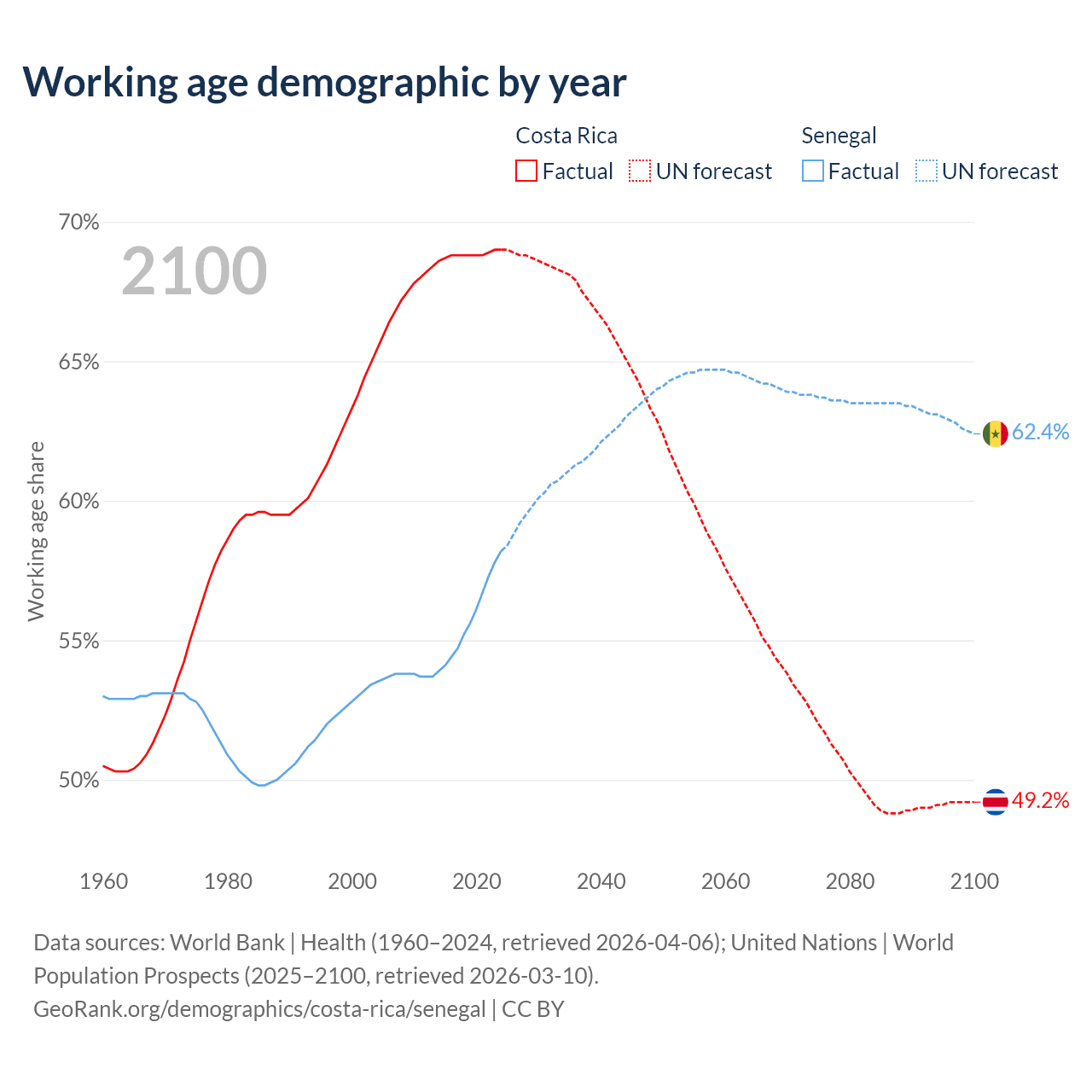 - Costa Rica has 3.57M working age adults (aged 15-64) vs 11.3M in Senegal.