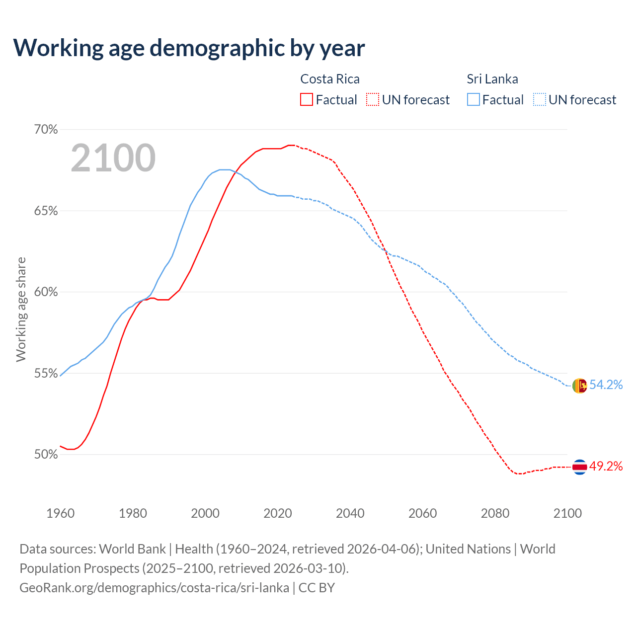 - Costa Rica has 3.57M working age adults (aged 15-64) vs 14.6M in Sri Lanka.