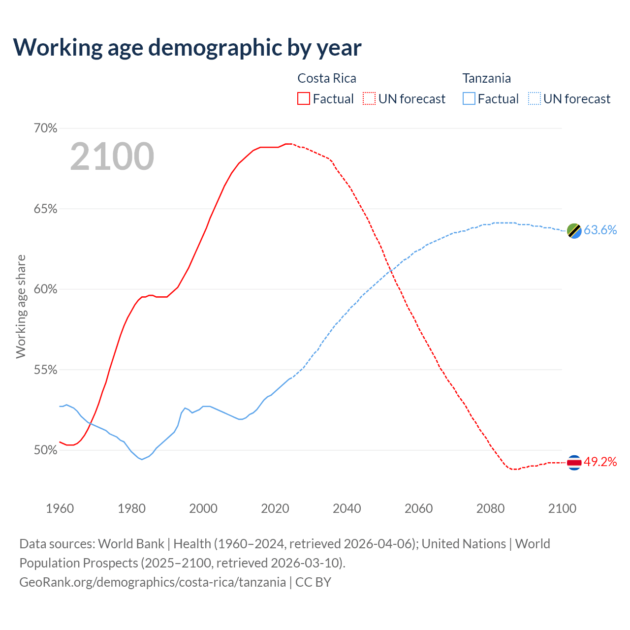 - Costa Rica has 3.57M working age adults (aged 15-64) vs 39.8M in Tanzania.