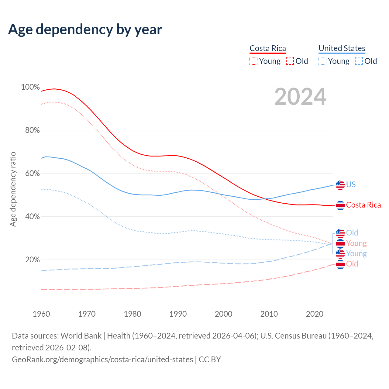 - World Bank | Health (1960–2024, retrieved 2026-04-06)