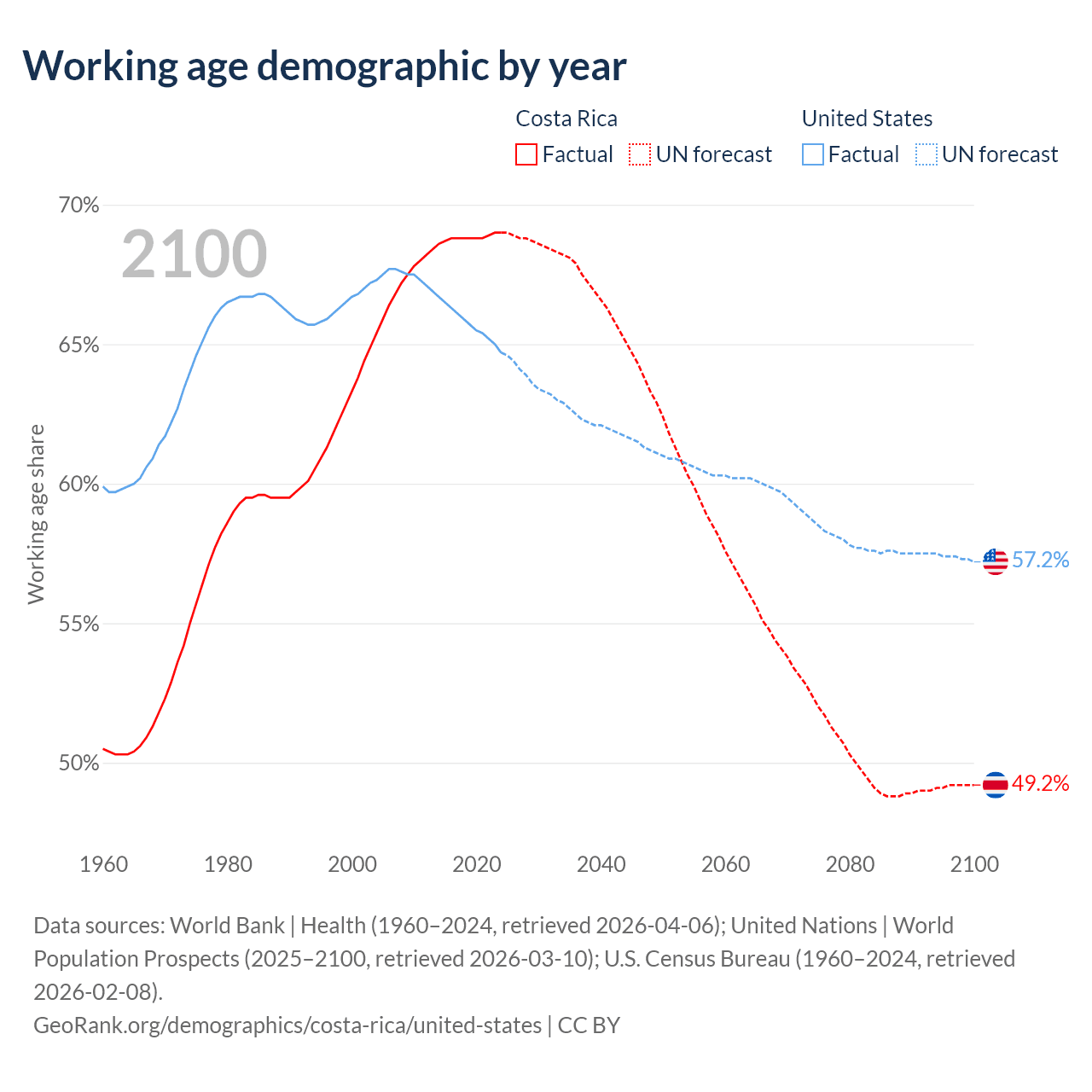 - Costa Rica has 3.57M working age adults (aged 15-64) vs 223M in the United States.