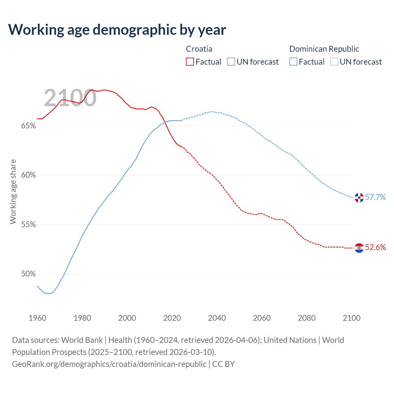 - Croatia has 2.4M working age adults (aged 15-64) vs 7.63M in the Dominican Republic.