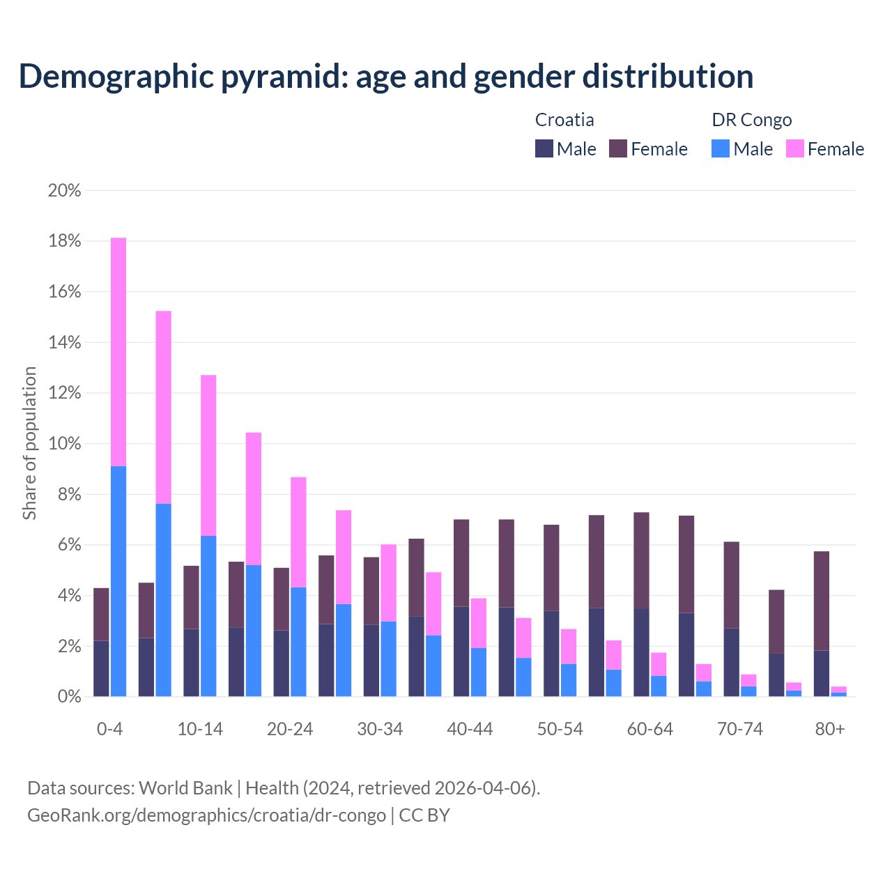 Demographics of Croatia compared to the DR Congo: