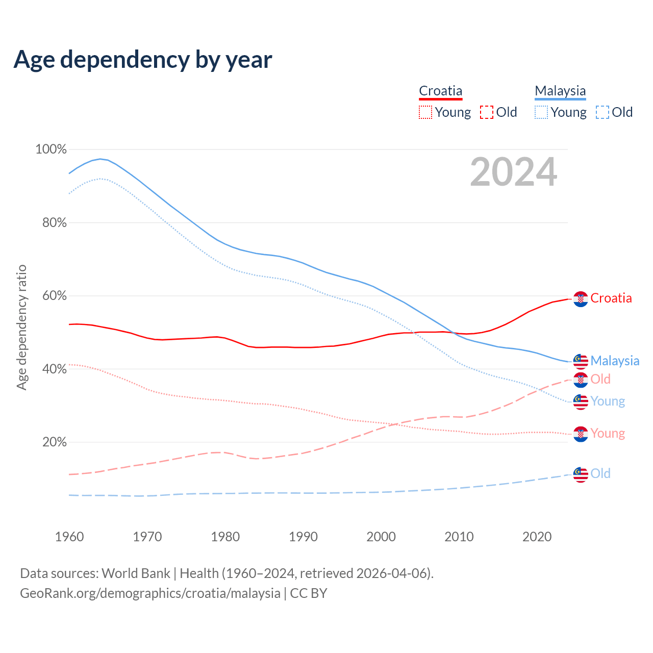 - Croatia is ranked 11/196 by median age (oldest to youngest) vs 92/196 for Malaysia.