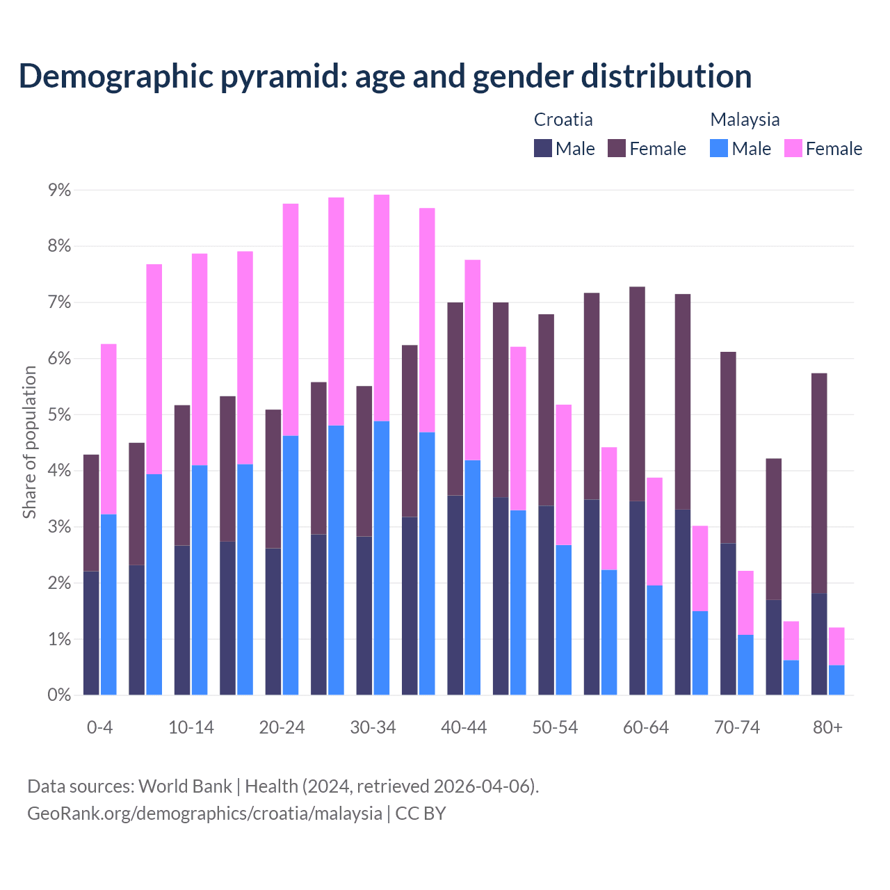Demographics of Croatia compared to Malaysia: