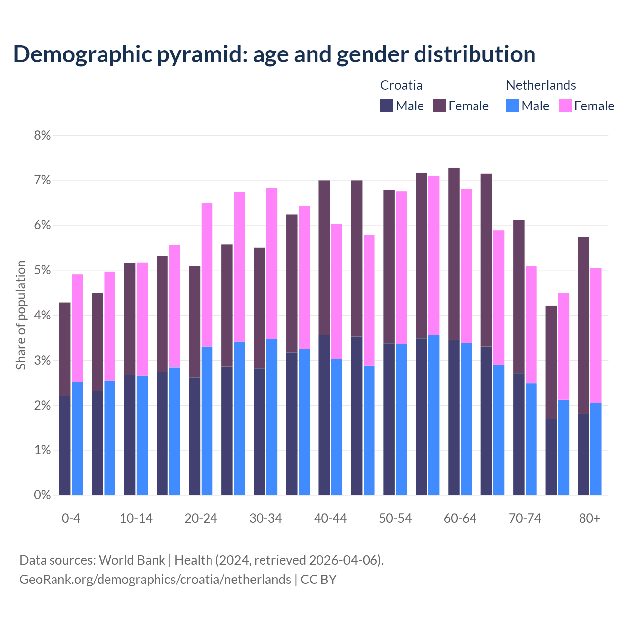 Demographics of Croatia compared to the Netherlands: