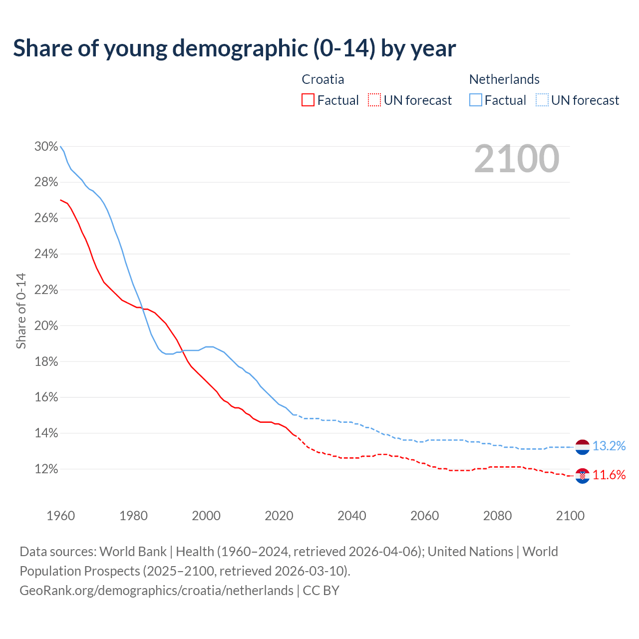 - The share of young demographic (0-15 years old) in Croatia is 13.9% vs 15% in the Netherlands.