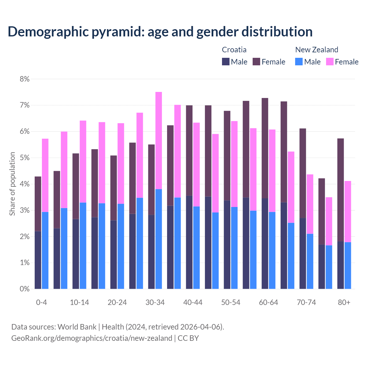 Demographics of Croatia compared to New Zealand: