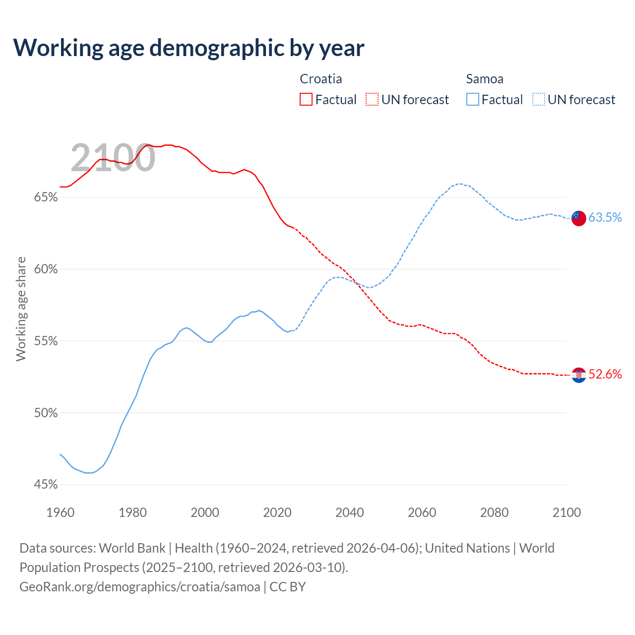 - Croatia has 2.4M working age adults (aged 15-64) vs 123K in Samoa.