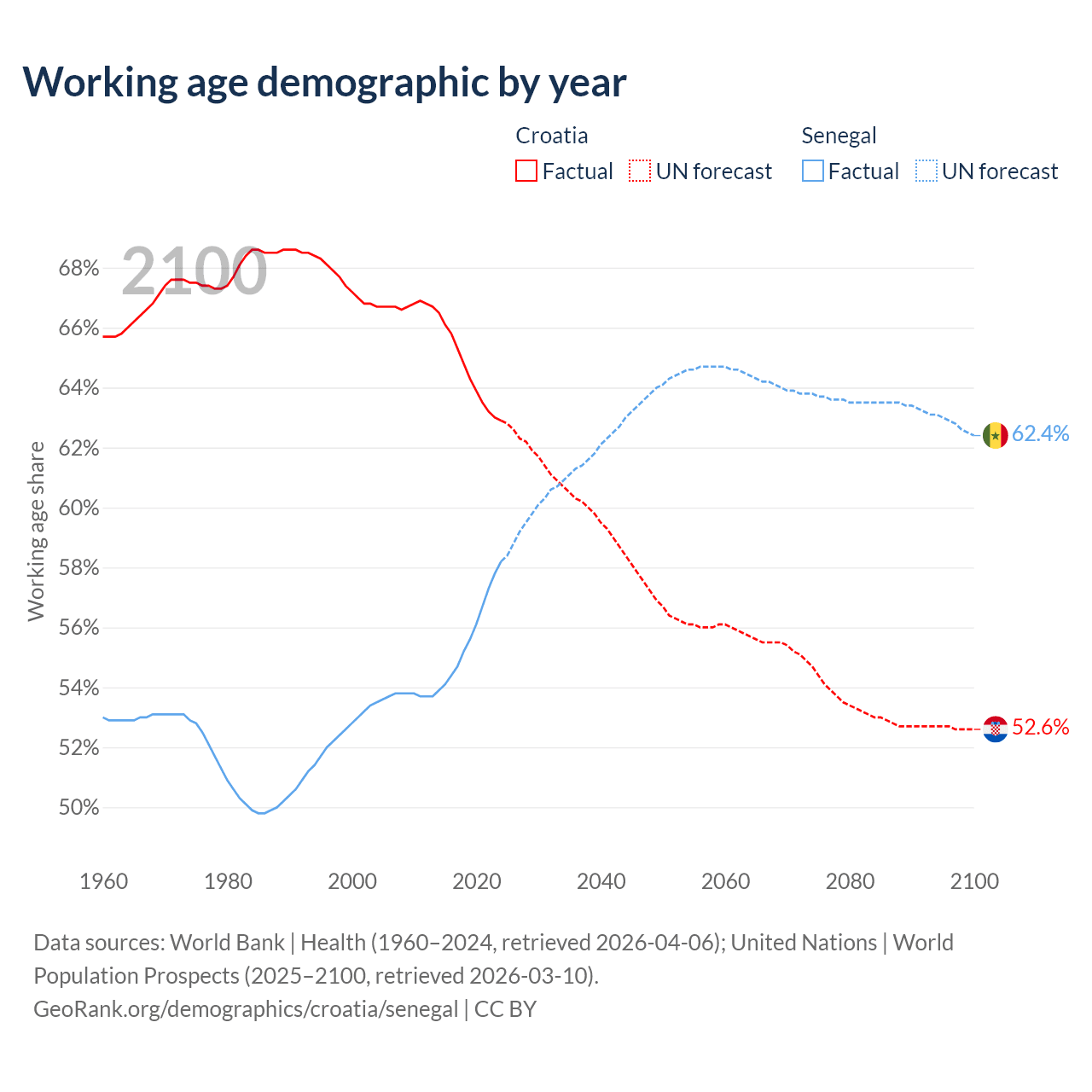 - Croatia has 2.4M working age adults (aged 15-64) vs 11.3M in Senegal.
