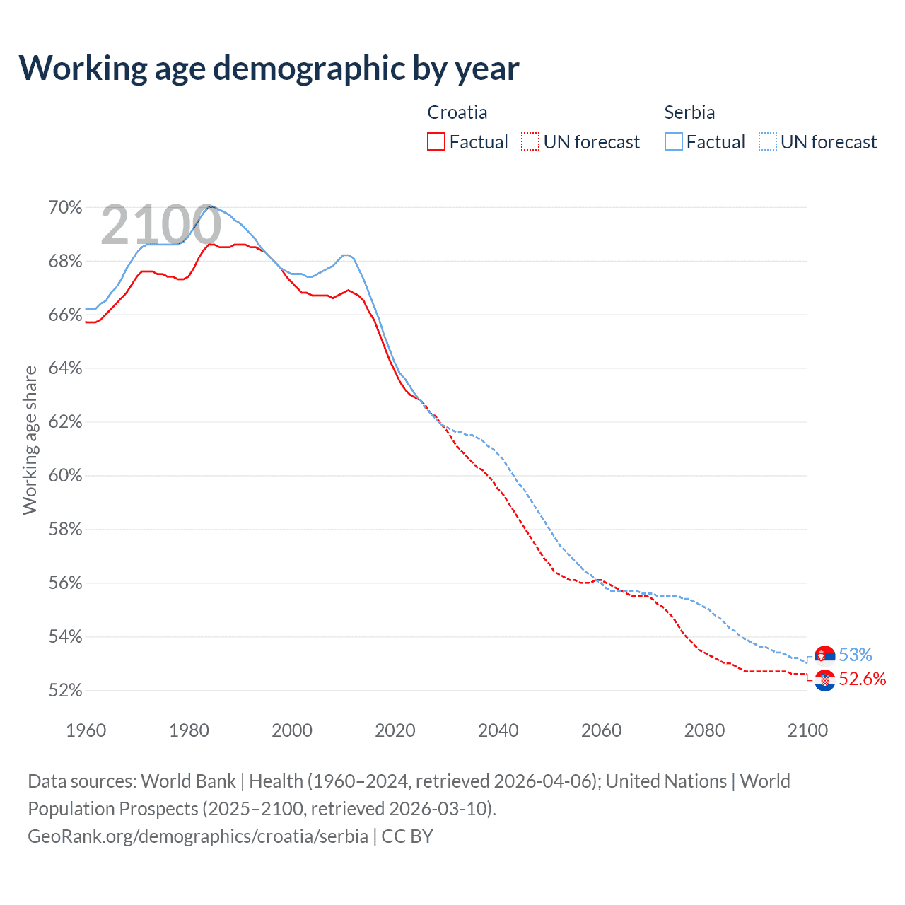 - Croatia has 2.4M working age adults (aged 15-64) vs 4.09M in Serbia.