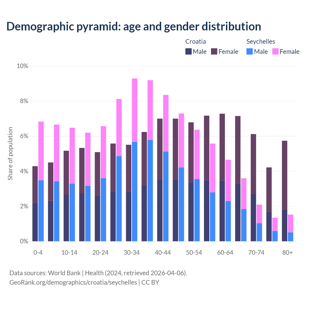 Demographics of Croatia compared to the Seychelles: