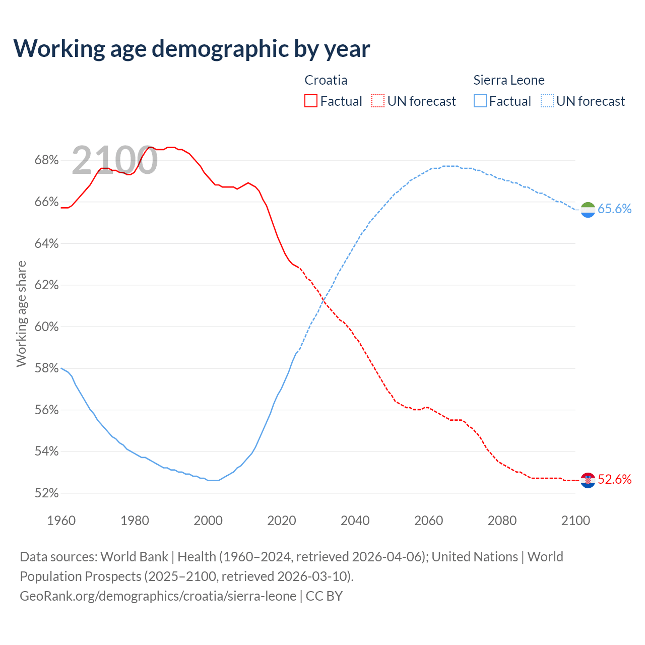 - Croatia has 2.4M working age adults (aged 15-64) vs 5.31M in Sierra Leone.