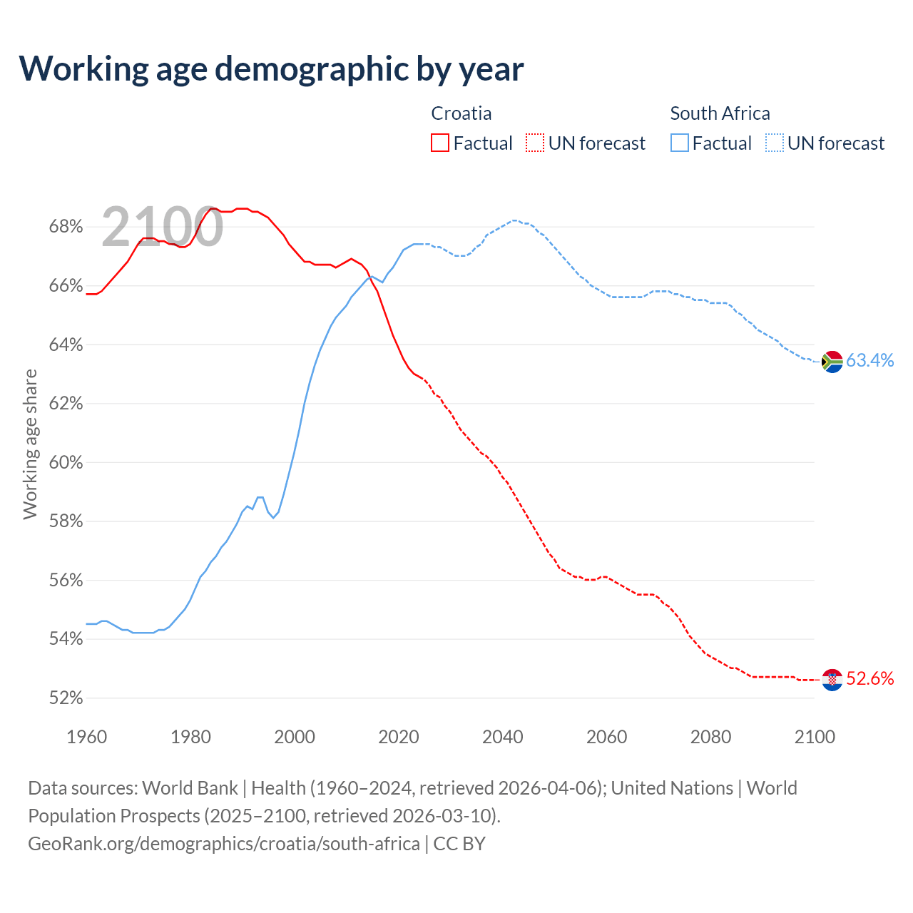 - Croatia has 2.4M working age adults (aged 15-64) vs 44.3M in South Africa.