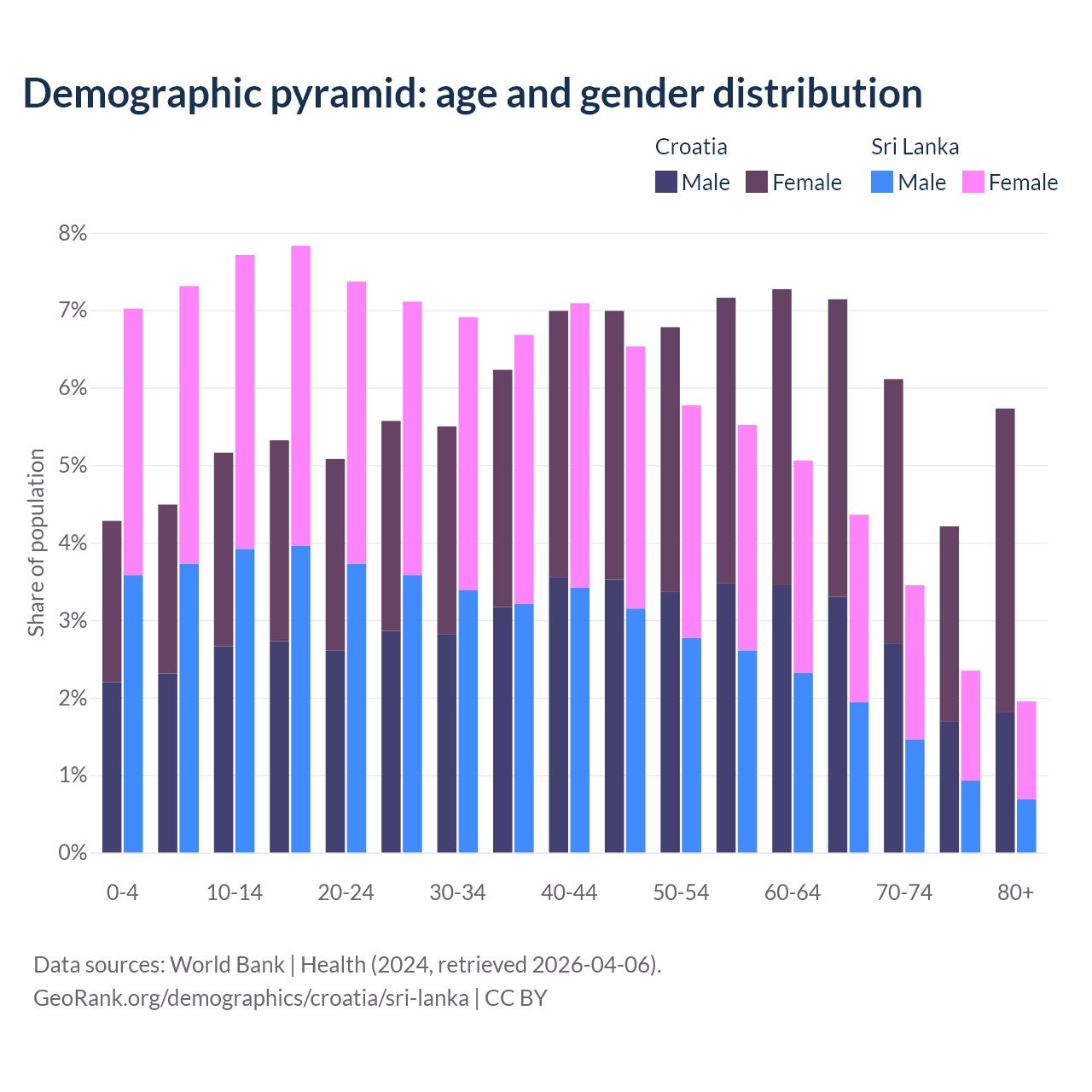 Demographics of Croatia compared to Sri Lanka: