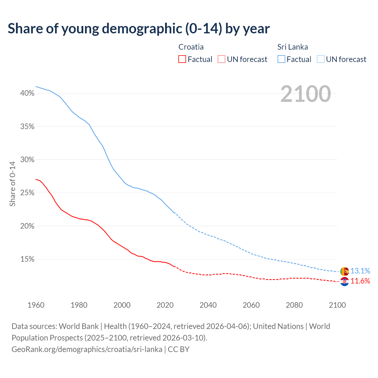 - The share of young demographic (0-15 years old) in Croatia is 13.9% vs 22% in Sri Lanka.