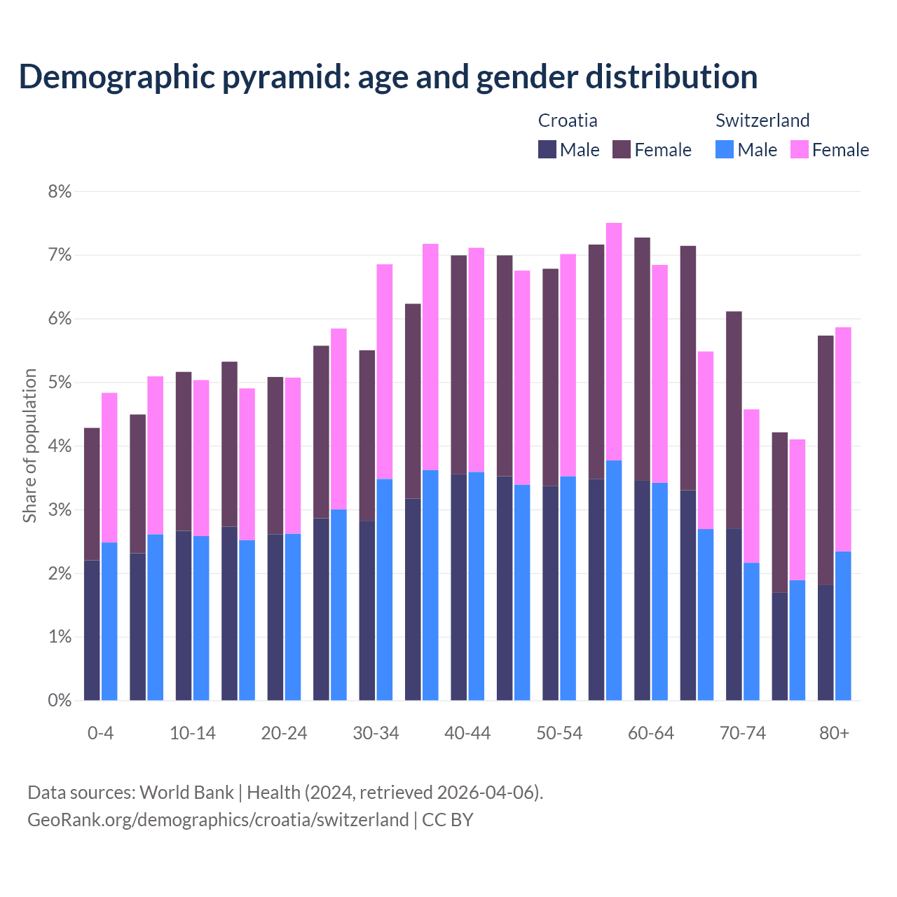 Demographics of Croatia compared to Switzerland: