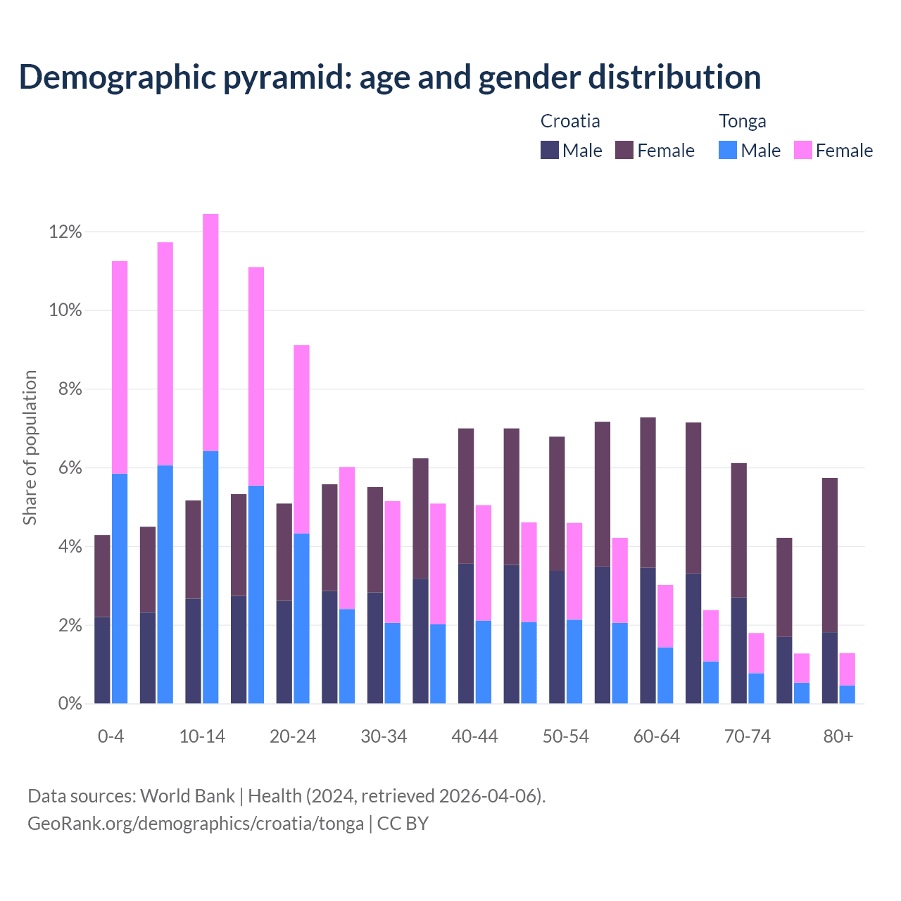 Demographics of Croatia compared to Tonga: