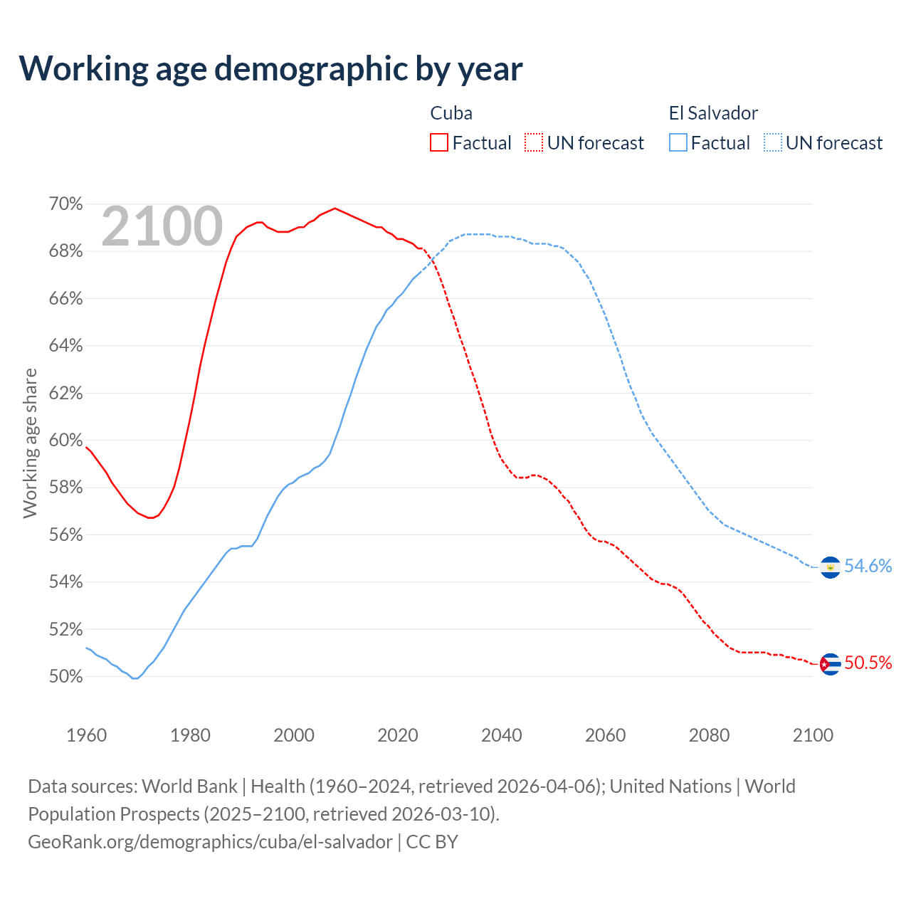- Cuba has 7.42M working age adults (aged 15-64) vs 4.29M in El Salvador.