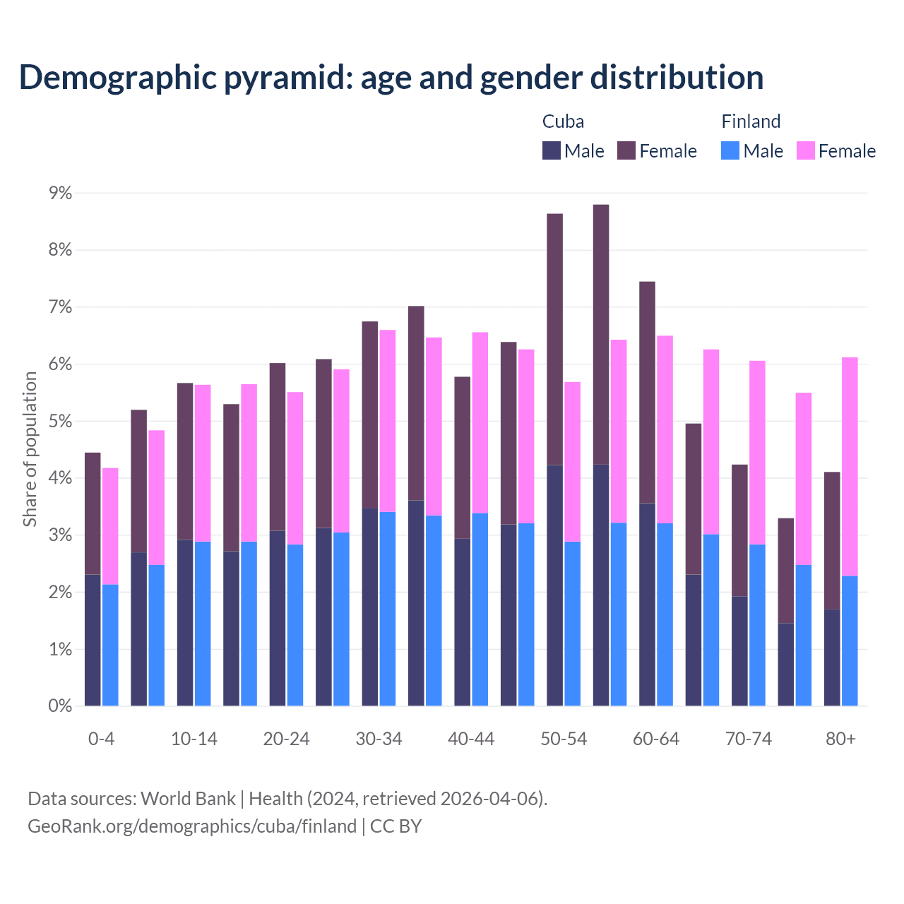 Demographics of Cuba compared to Finland: