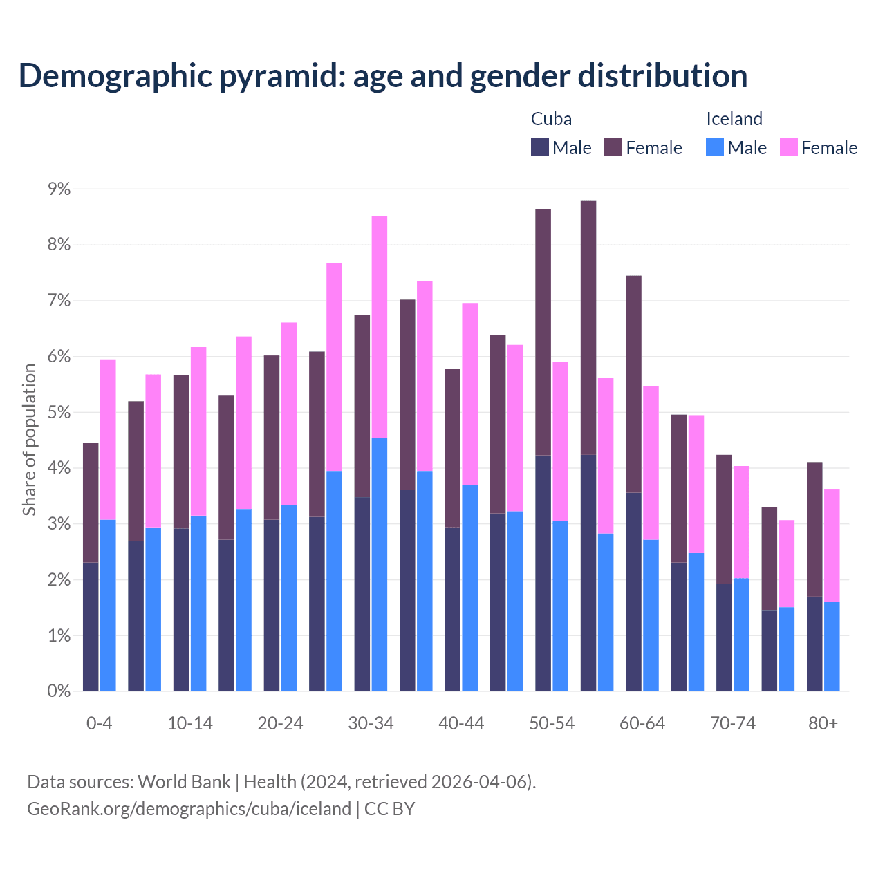 Demographics of Cuba compared to Iceland: