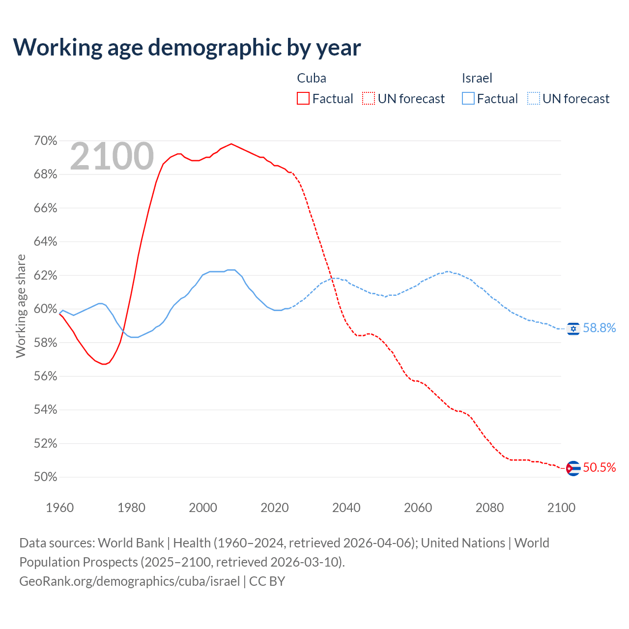 - Cuba has 7.42M working age adults (aged 15-64) vs 6.18M in Israel.