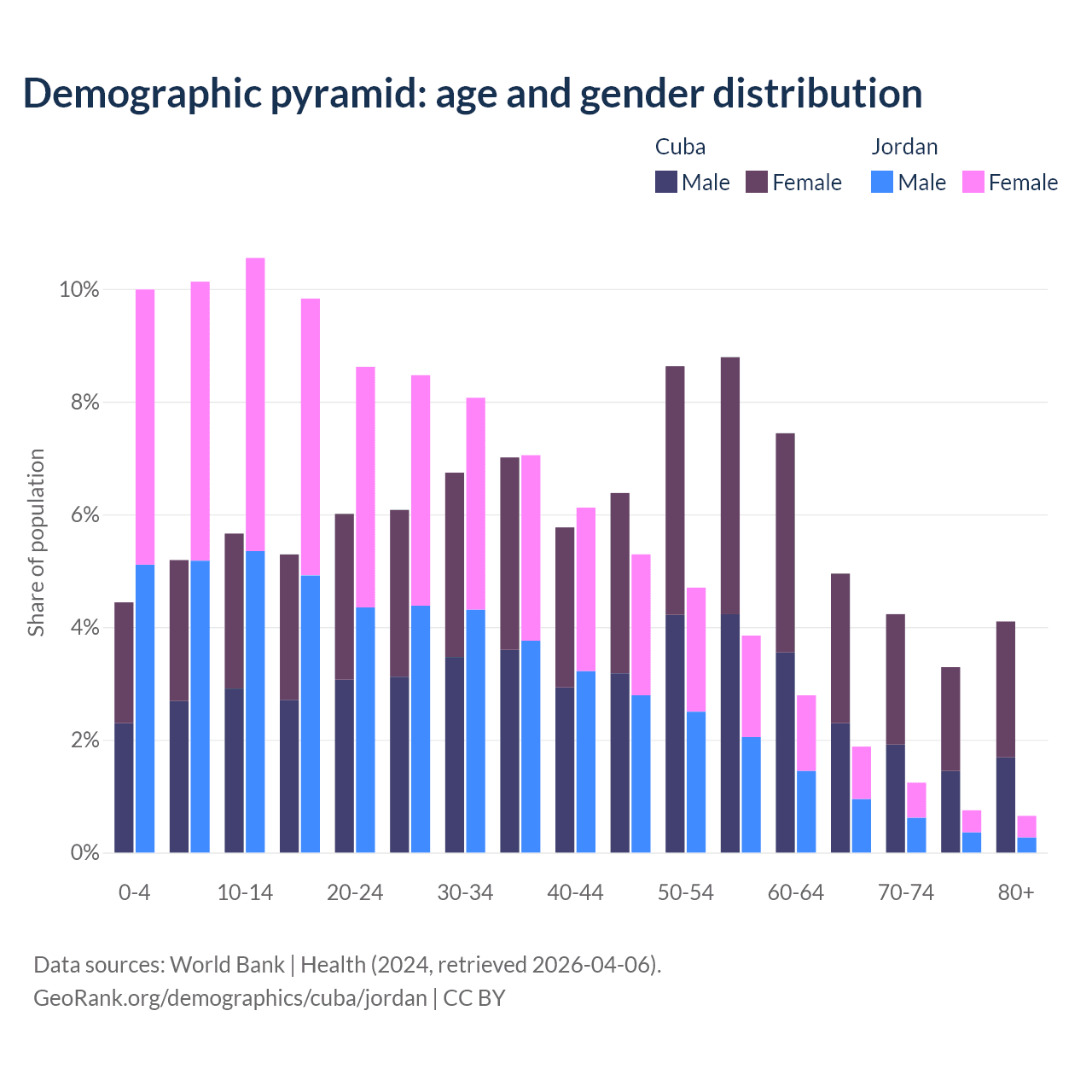 Demographics of Cuba compared to Jordan: