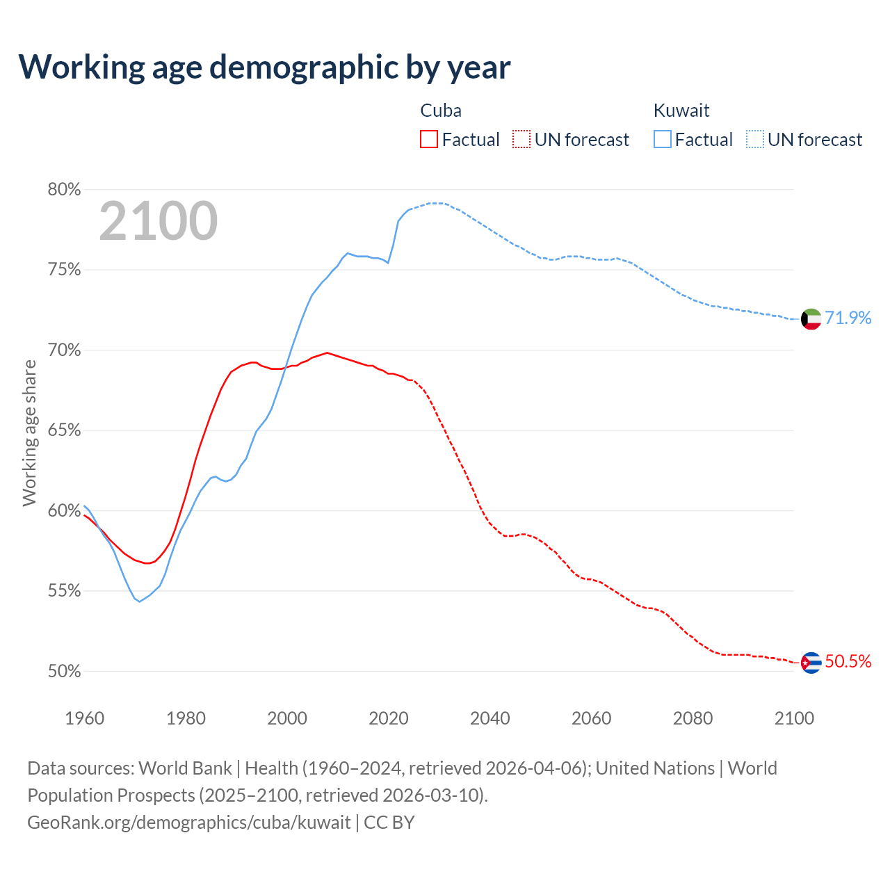 - Cuba has 7.42M working age adults (aged 15-64) vs 4.01M in Kuwait.