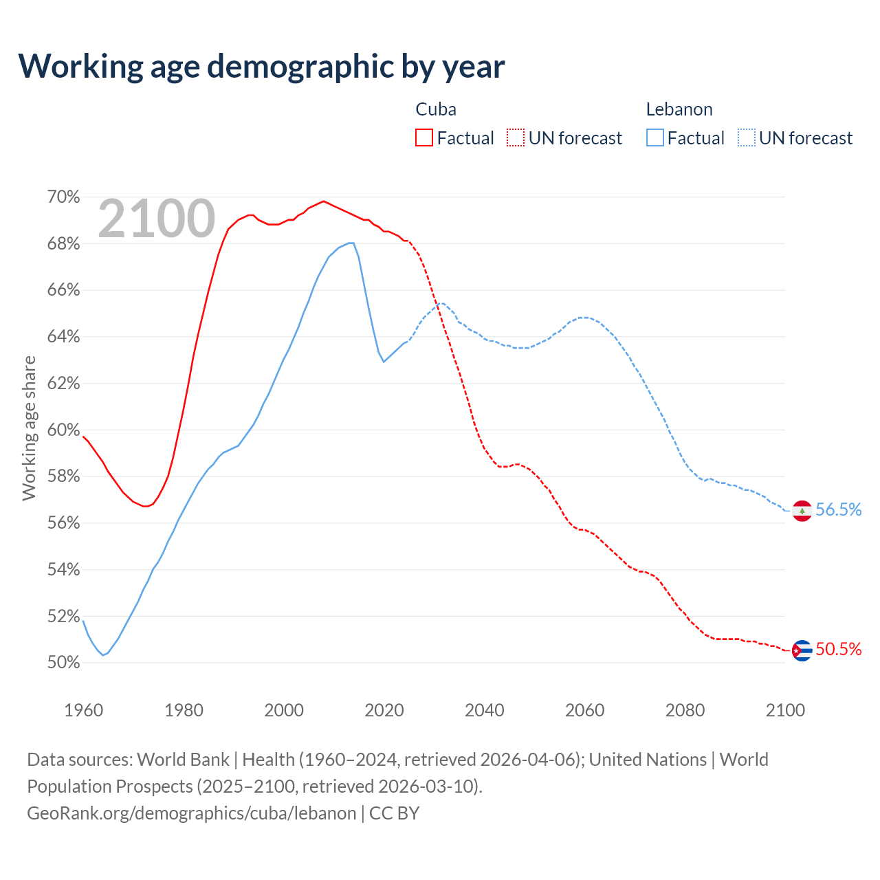 - Cuba has 7.42M working age adults (aged 15-64) vs 3.76M in Lebanon.