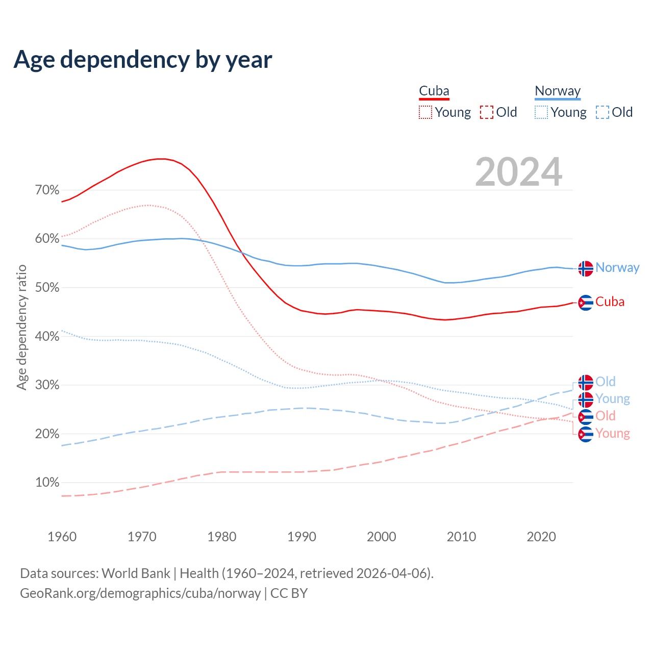 - Cuba is ranked 27/196 by median age (oldest to youngest) vs 43/196 for Norway.