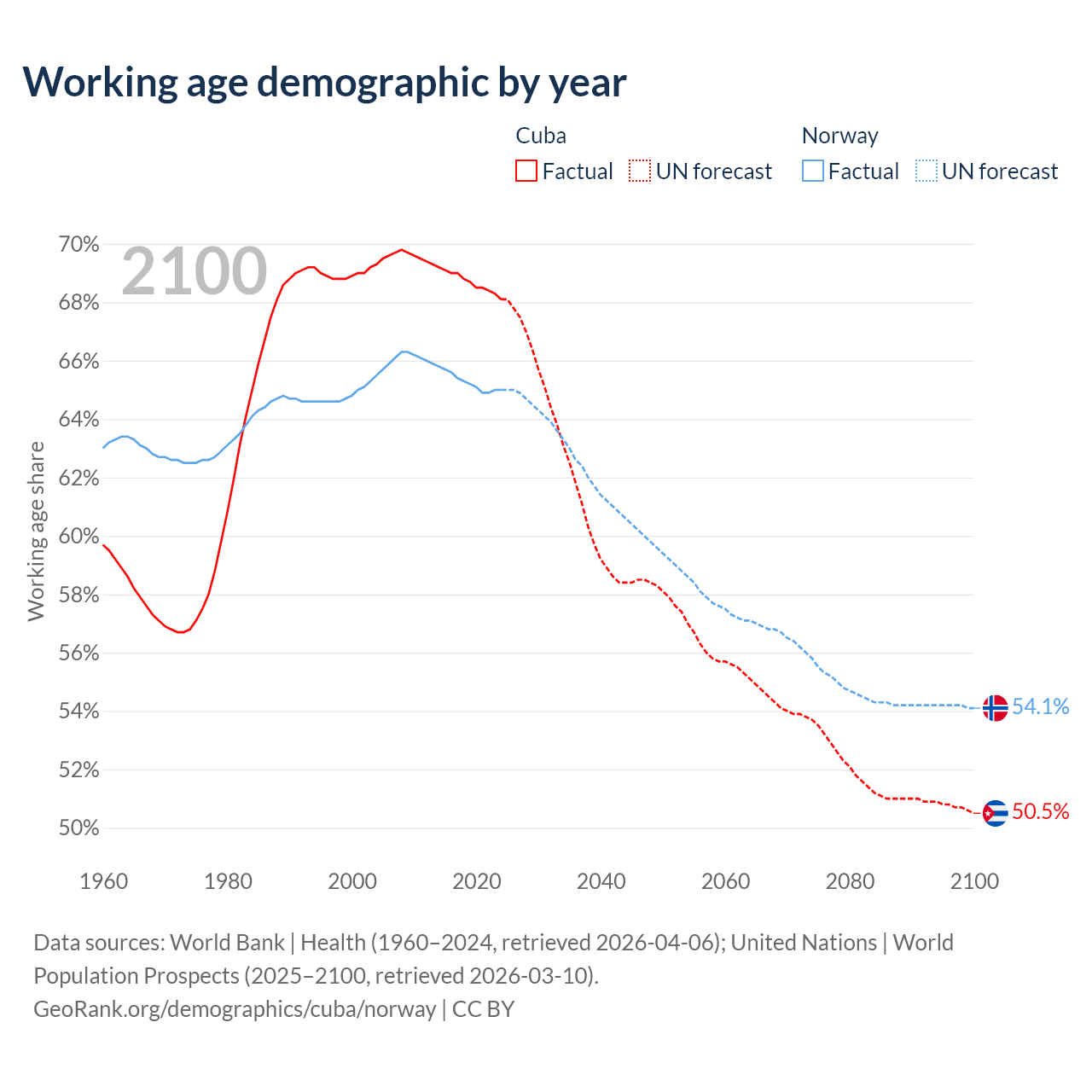 - Cuba has 7.42M working age adults (aged 15-64) vs 3.69M in Norway.