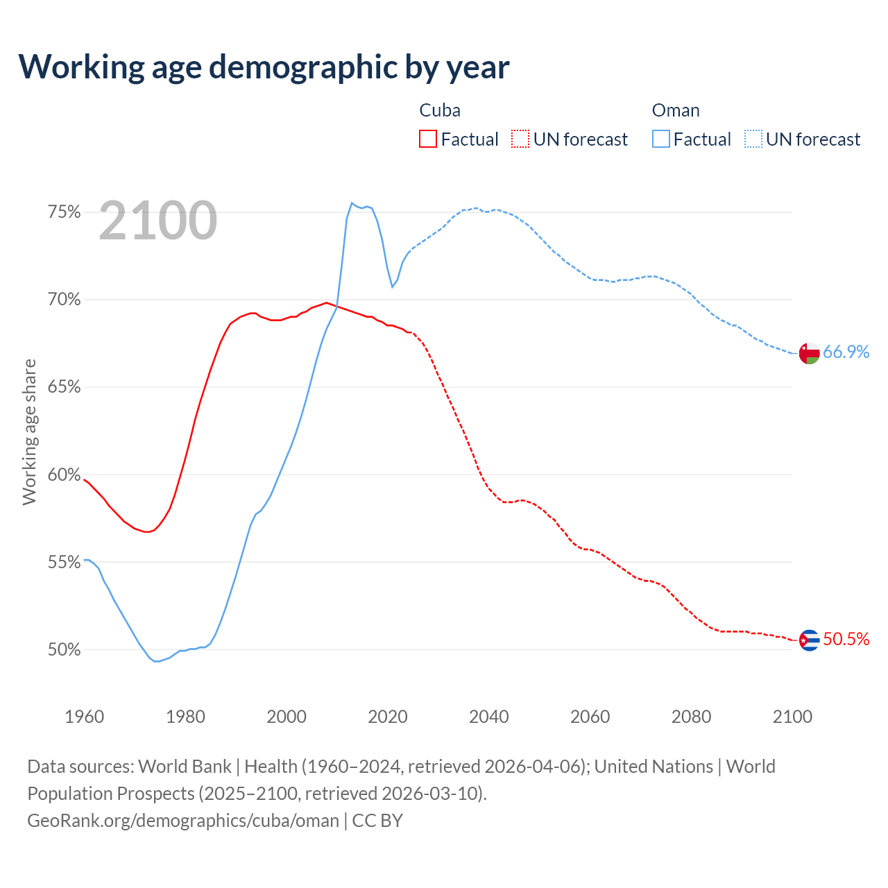 - Cuba has 7.42M working age adults (aged 15-64) vs 4.19M in Oman.