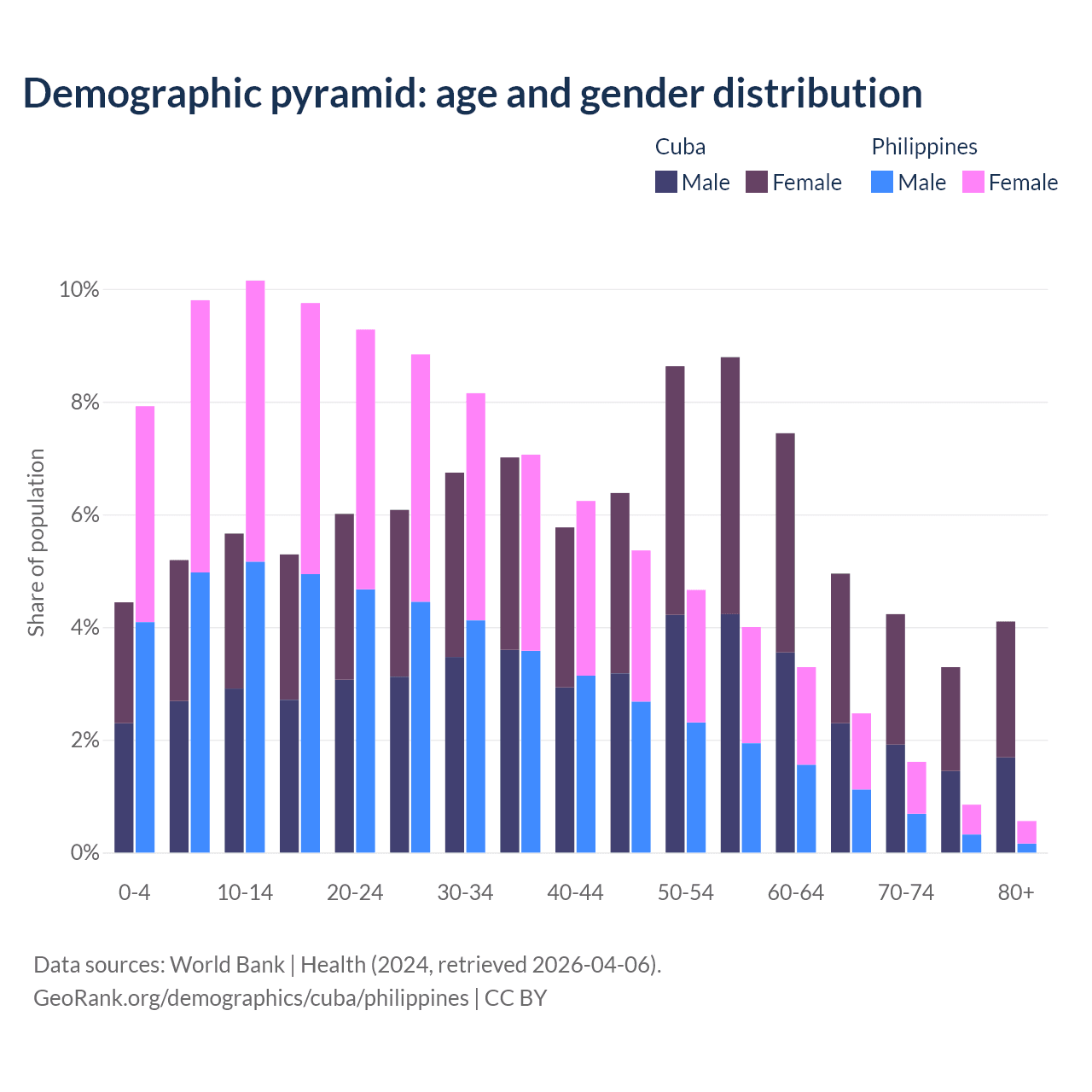 Demographics of Cuba compared to the Philippines: