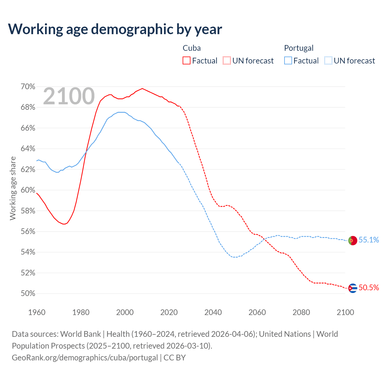 - Cuba has 7.42M working age adults (aged 15-64) vs 6.68M in Portugal.