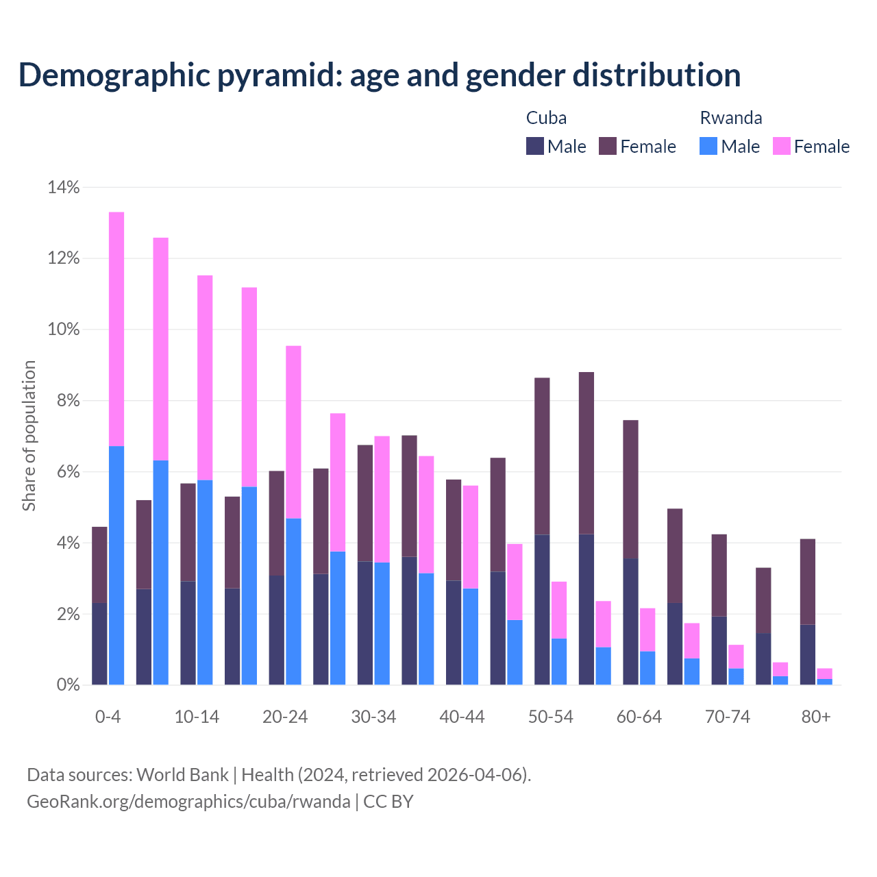 Demographics of Cuba compared to Rwanda: