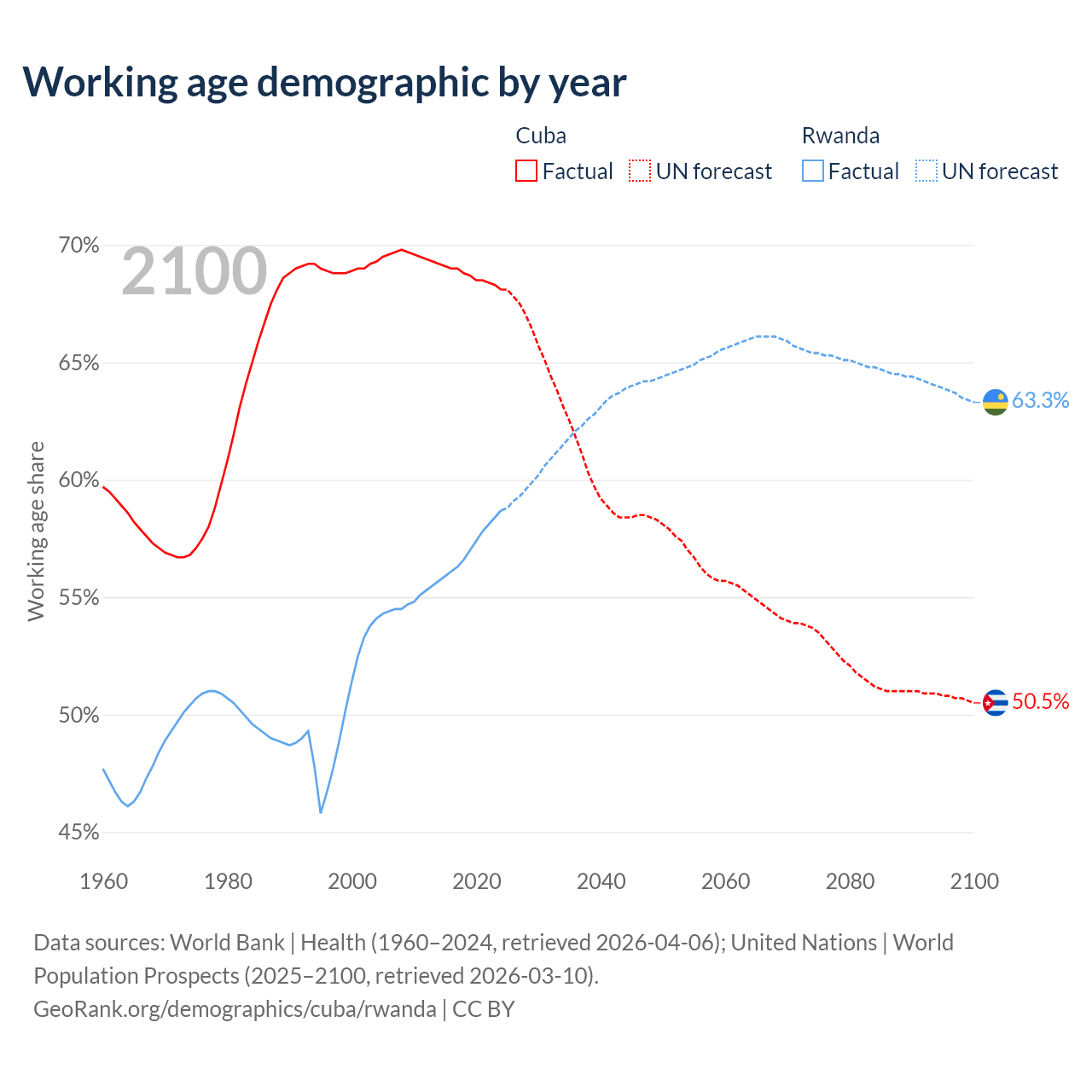 - Cuba has 7.42M working age adults (aged 15-64) vs 8.79M in Rwanda.
