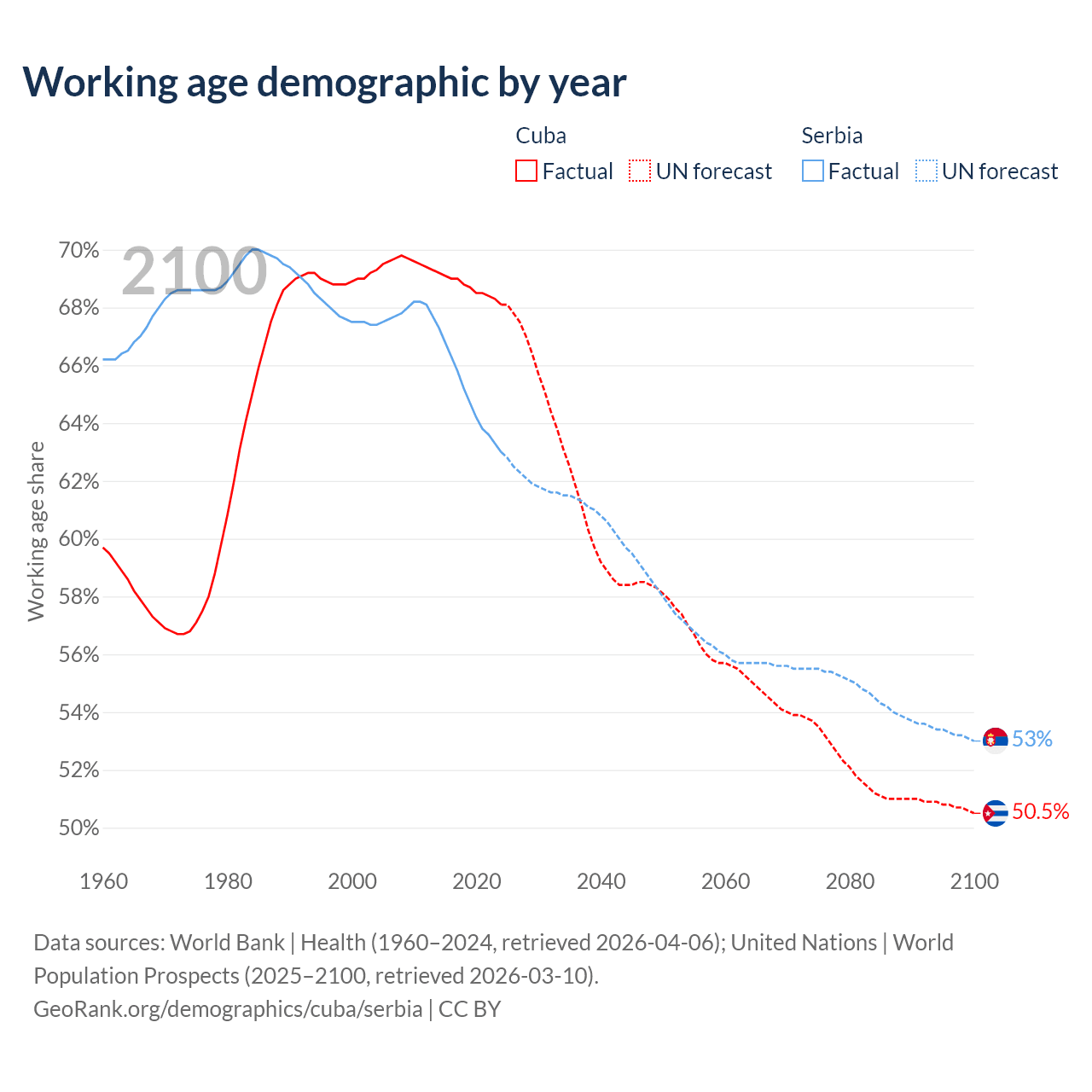 - Cuba has 7.42M working age adults (aged 15-64) vs 4.09M in Serbia.