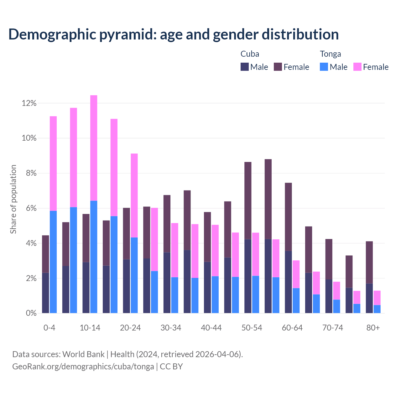 Demographics of Cuba compared to Tonga: