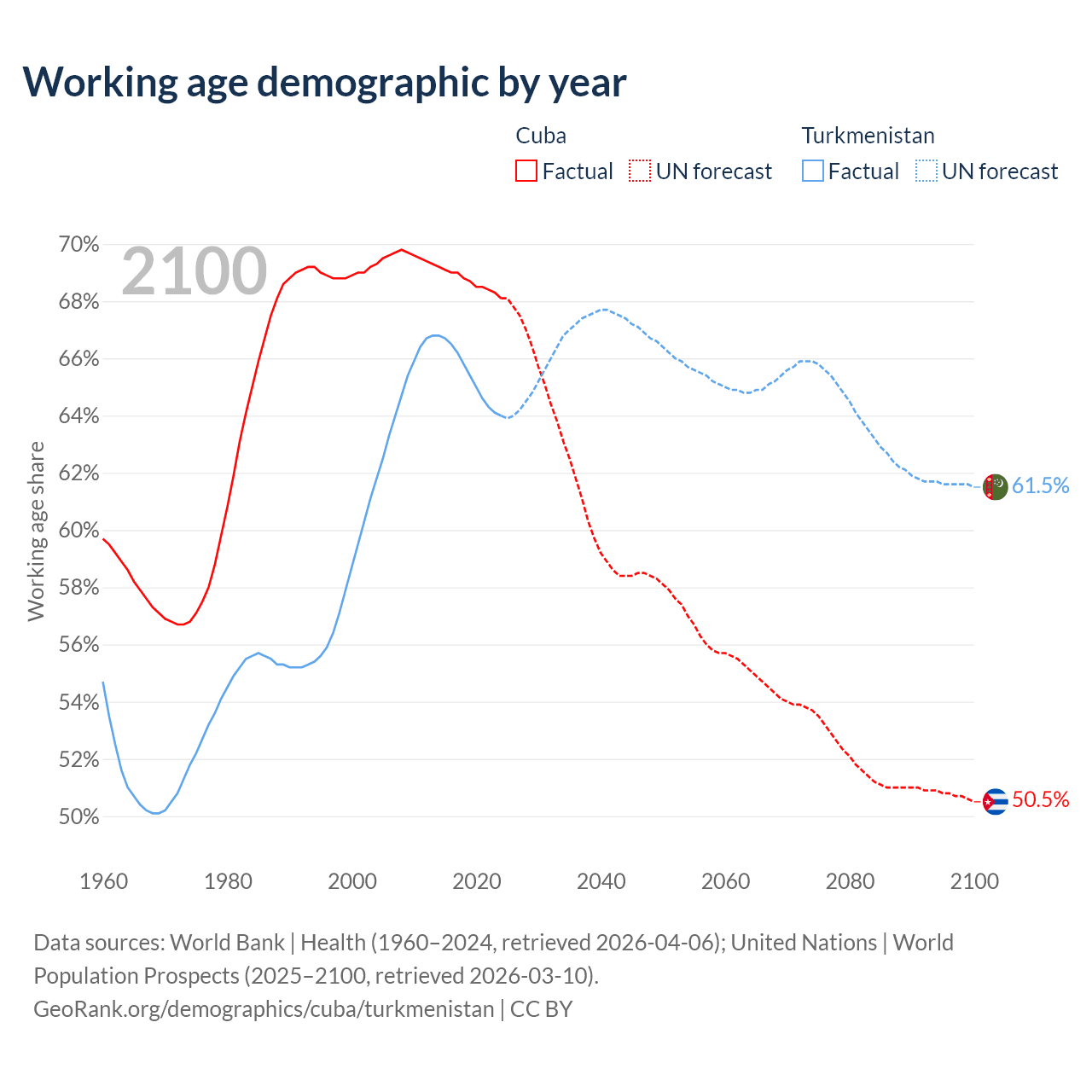 - Cuba has 7.42M working age adults (aged 15-64) vs 4.97M in Turkmenistan.