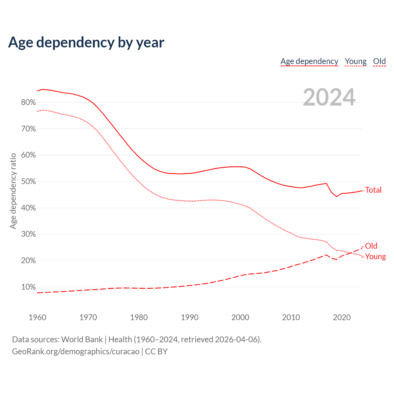 Data sources: World Bank | Health (1960–2024, retrieved 2026-04-06); U.S. Census Bureau (1960–2024, retrieved 2026-02-08).