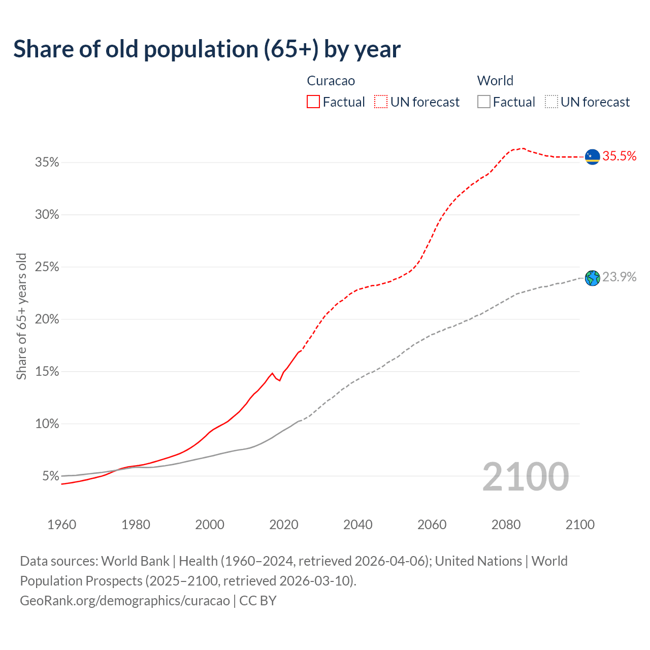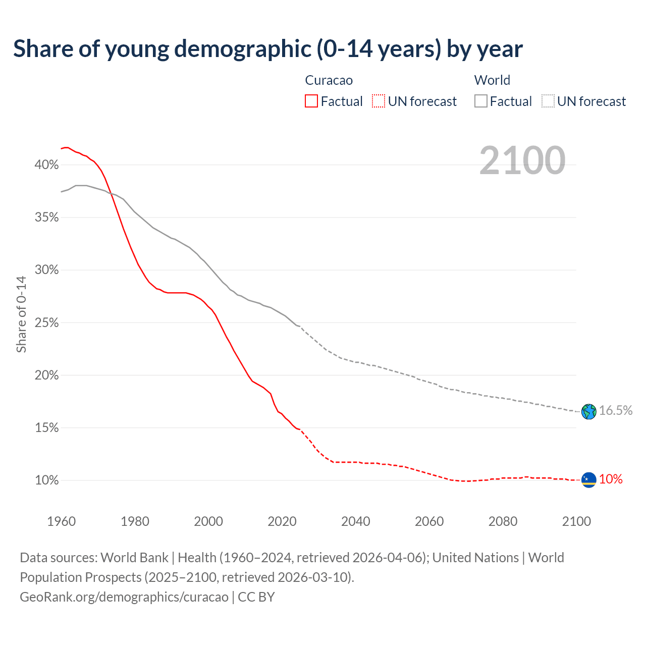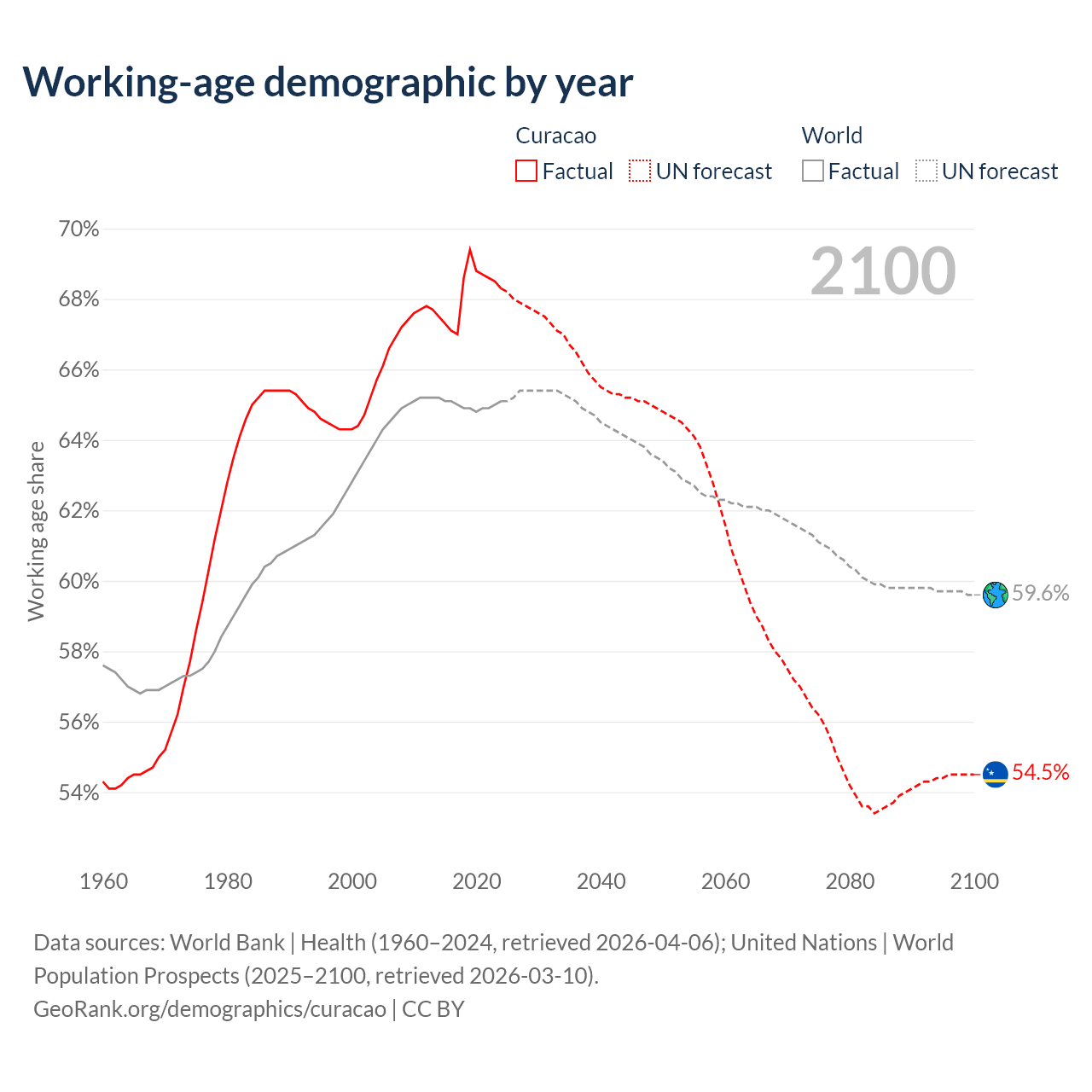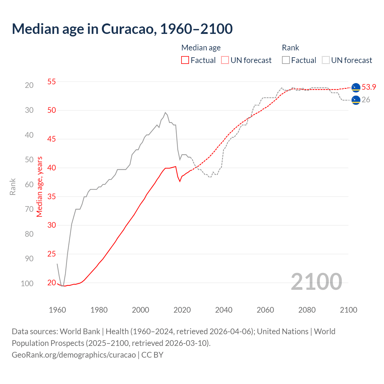 Median age in Curacao, 1960–2100